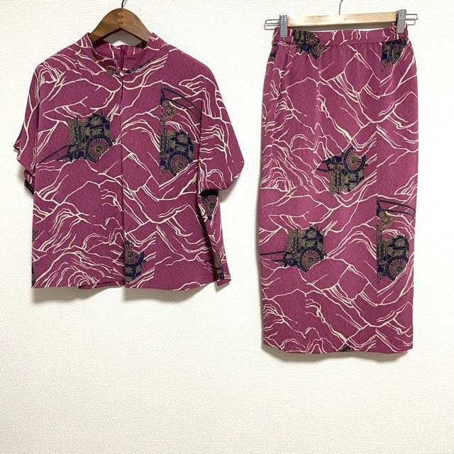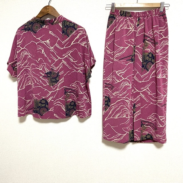 | 実寸サイズ | (トップス)ゆき丈約 41cm・着丈約 59cm・胸囲約 64cm×2 (スカート)ウェスト(ゴム)約 29cm×2~・スカート丈約 75cm(スリット丈約 21cm) |