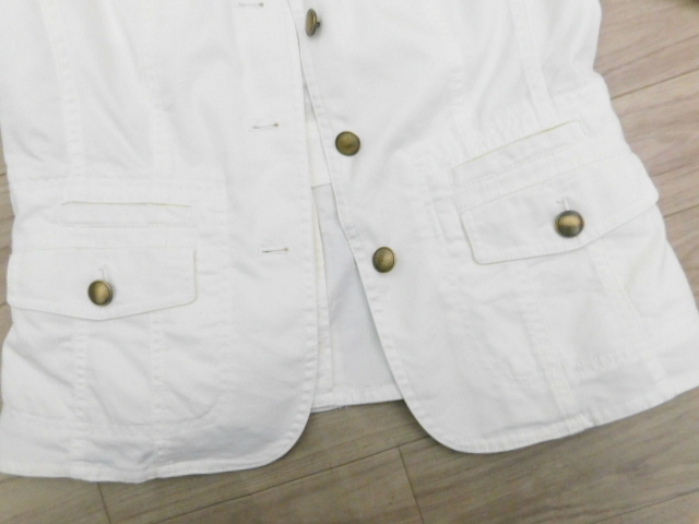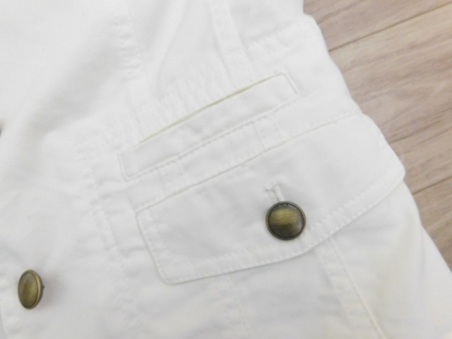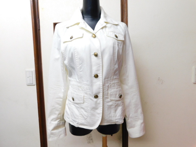 | 商品 | ★発送完了時に、評価を入れさせていただいております。*評価なし*の方は、事前にお知らせくださいね。 ★かんたん決済のシステムが変わりました。かんたん決済されましても、ヤフーの査定にお時間がかかります。当日営業時間内に発送できない場合がありますのでご了承ください。 ★ご注意欄・発送方法の説明文★を必ずお読みいただいた上でオークションに参加して下さいね。購入意思のない方のご入札・落札は、固くお断りいたします。 ■商品説明■ (*注*★土・日・祝日定休日・盆休み・年末年始★お休みの為、平日PM12時からPM5時の対応になりますのでご了承ください。・佐川急便宅急便のみ。) (株)オンワード樫山。着用回数の少ないお品です。前部両胸・前下左右部2個づつのポケット付き。襟ぐり部薄い汚れ・前薄いせにょごれ・袖口部薄い汚れがあります。裏地なし。 |