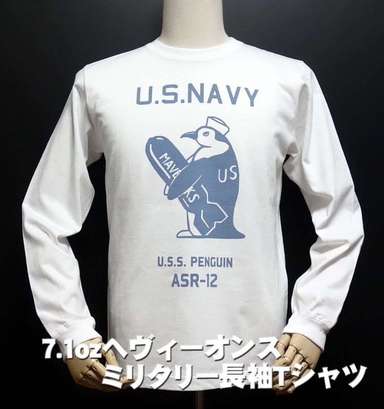 極厚 スーパーヘビーウェイト メンズ 長袖 Tシャツ S ミリタリー 米海軍ペンギン USS.PENGUIN ホワイト 白