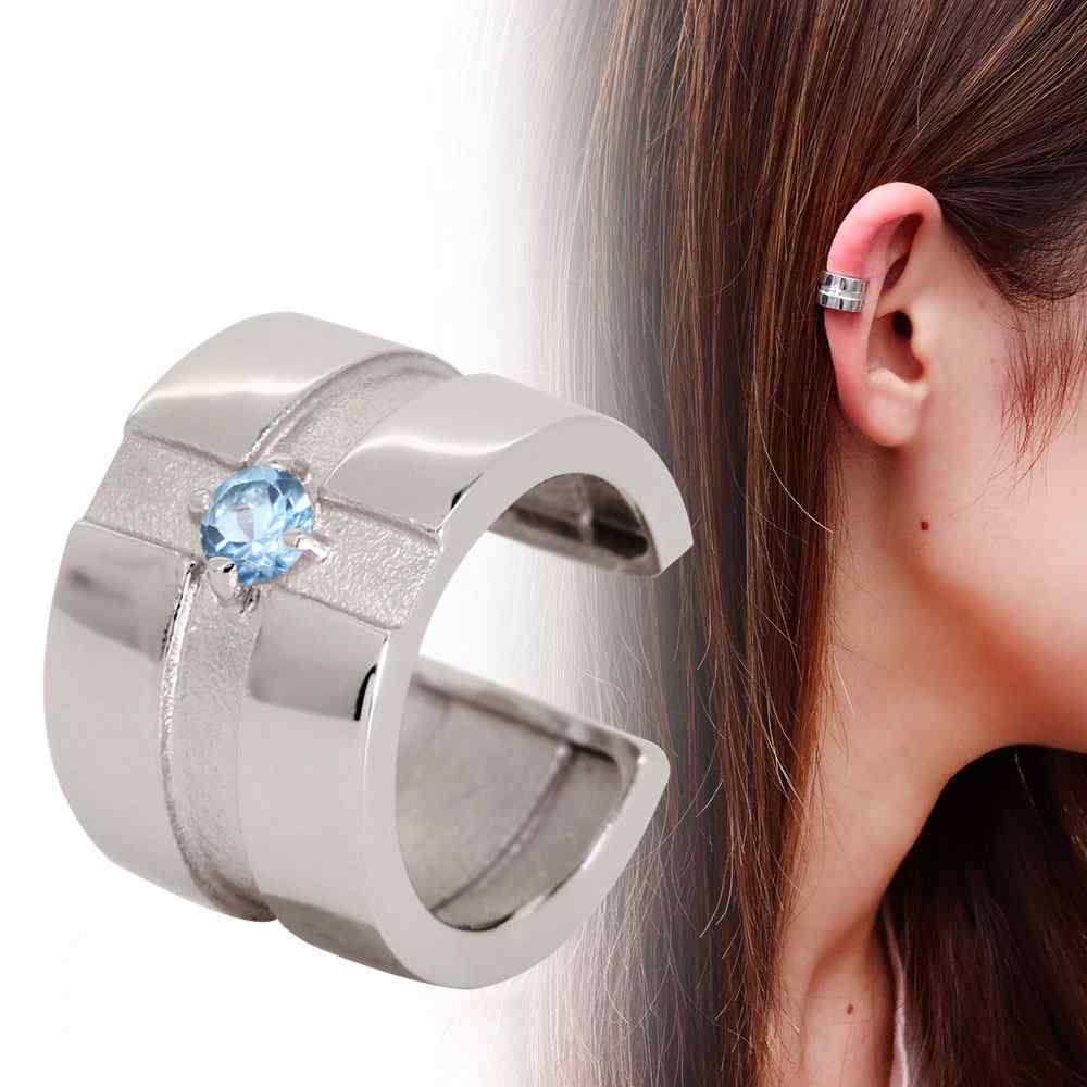 11月誕生石ブルートパーズを使用したプラチナ製の、クロス(十字架)モチーフのレディースイヤーカフです。