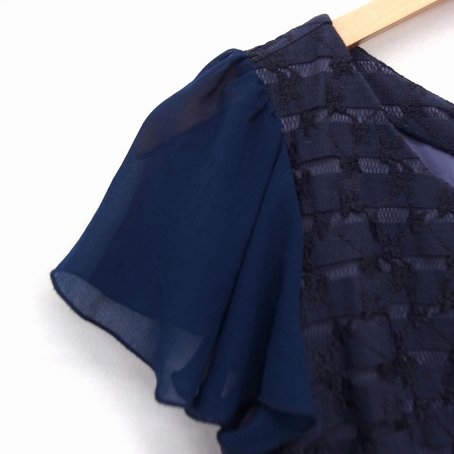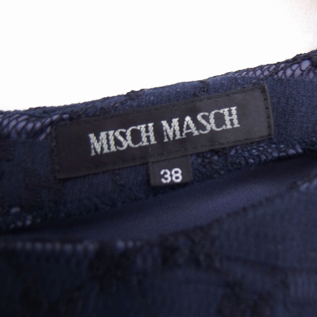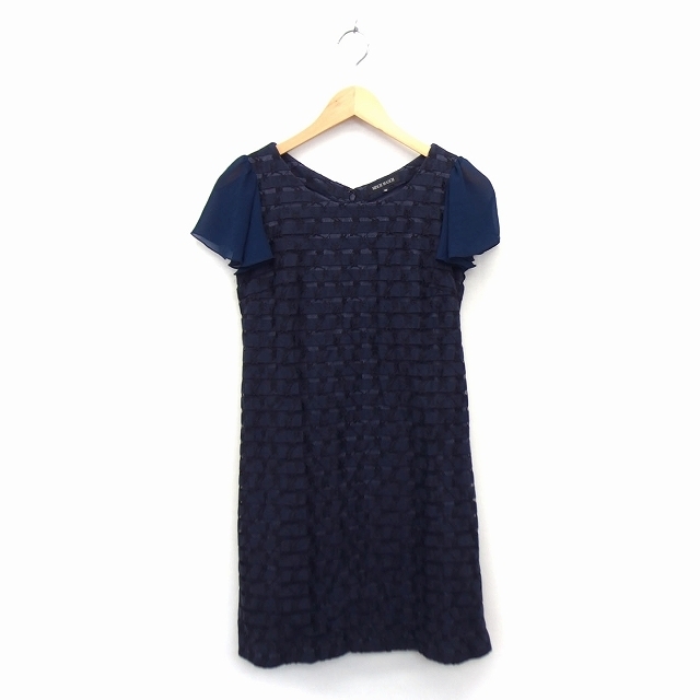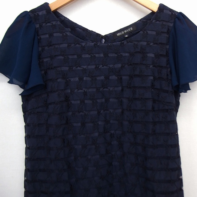 ミッシュマッシュ MISCH MASCH ワンピース 膝丈 ストレート 丸首 フレアスリーブ 綿混 レース シフォン M 黒 紺 /HT12 レディース