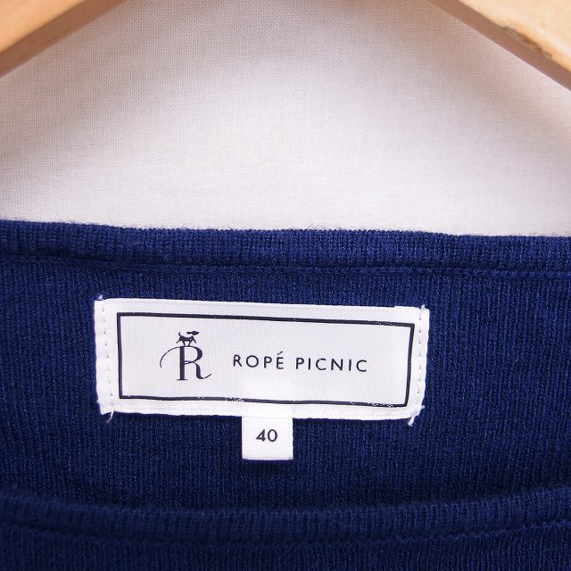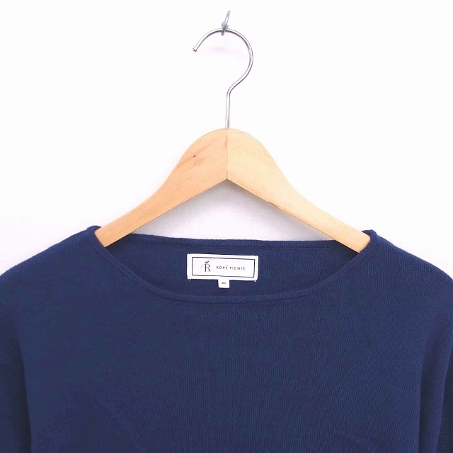 ロペピクニック ROPE Picnic ニット セーター ボートネック 袖リボン 七分袖 40 ネイビー 紺 /TT25 レディース