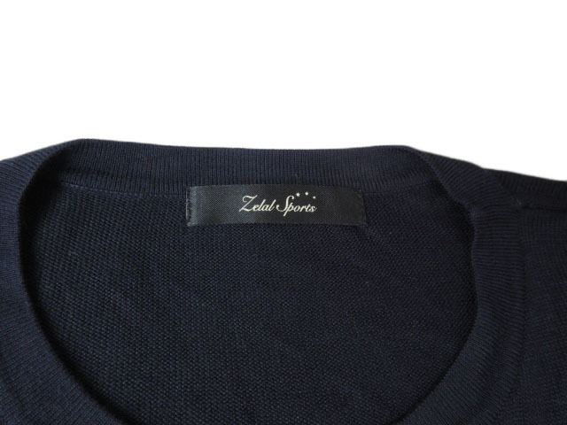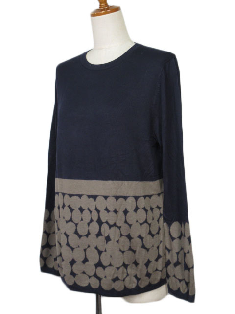 ゼラールスポーツ Zelal Spors カットソー ニット クルーネック ドット 長袖 L 紺 ネイビー レディース