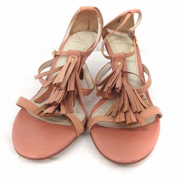 CARRANO 靴 シューズ パンプス グラディエーター タッセル ミドルヒール 6 ピンク /FT42 レディース