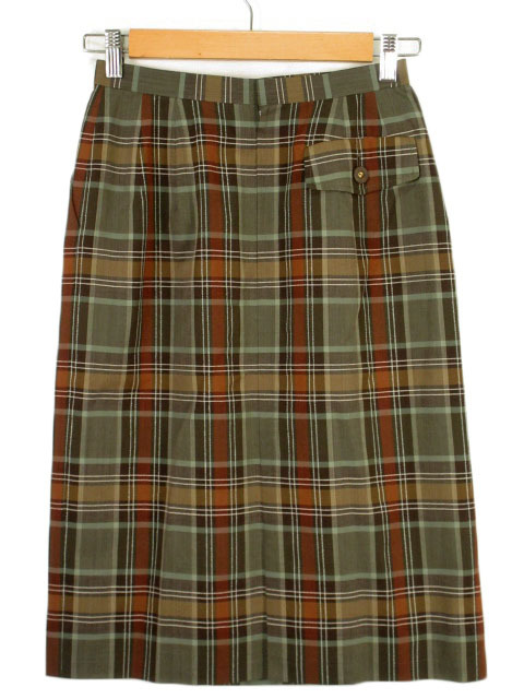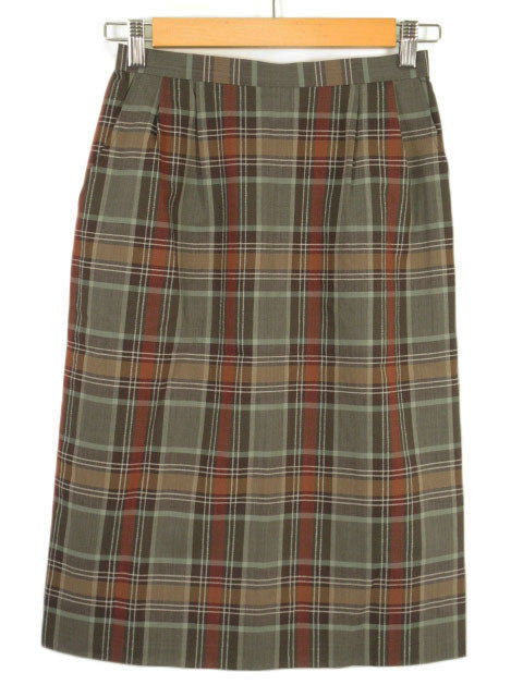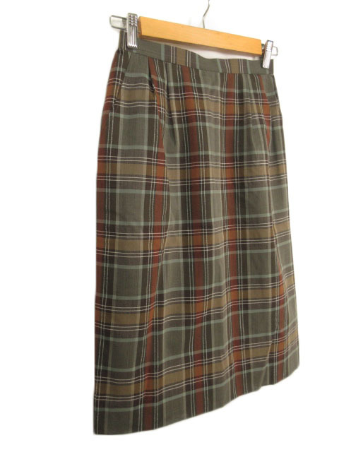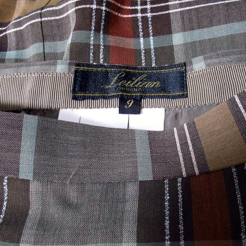 レリアン Leilian スカート タイト チェック スリット ウール 9 グレー レディース