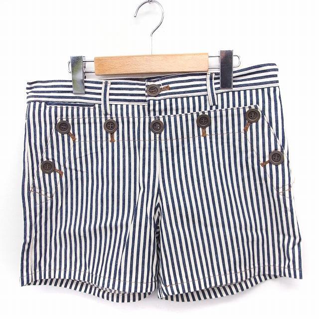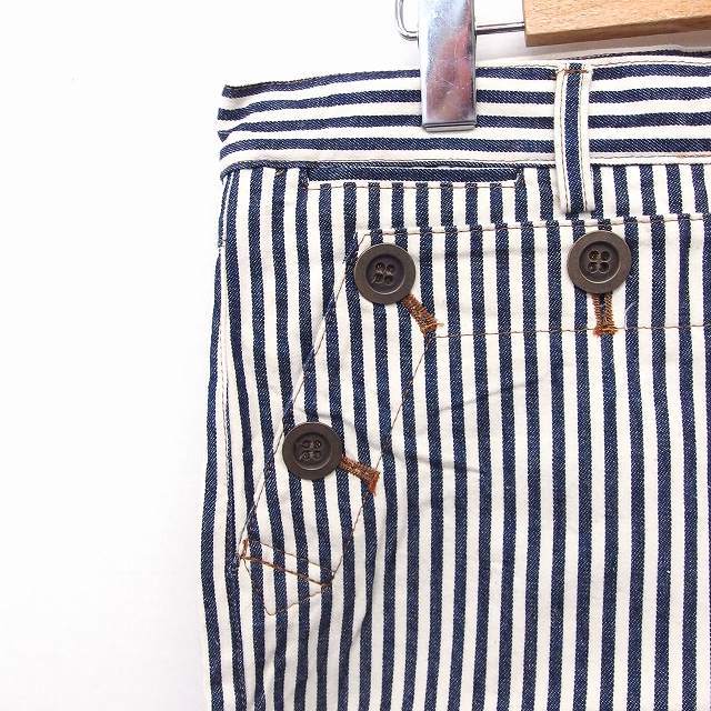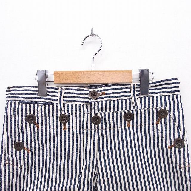 イエナ IENA パンツ ストライプ ボタン ショート コットン 綿 38 ホワイト 白 ネイビー 紺 /FT14 レディース