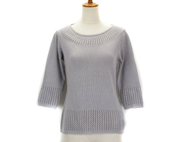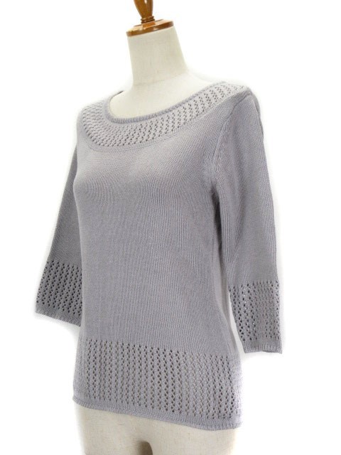 オットー コレクション OTTO collection カットソー ニット 透かし編み 七分袖 M グレー レディース