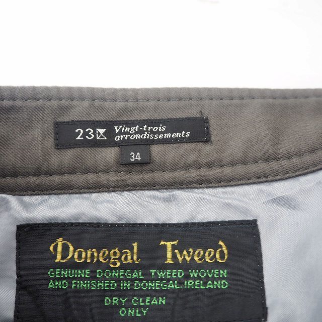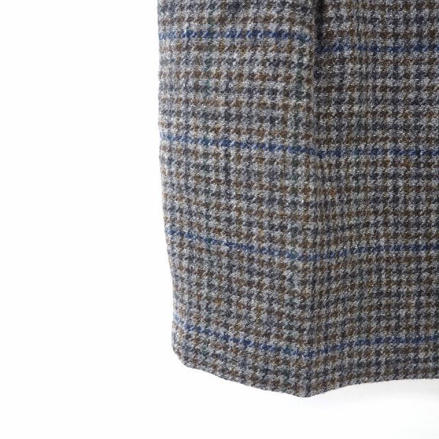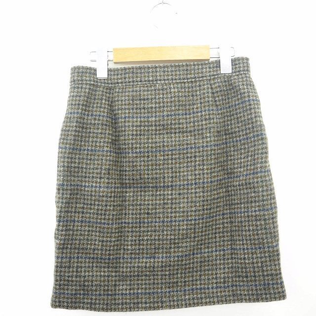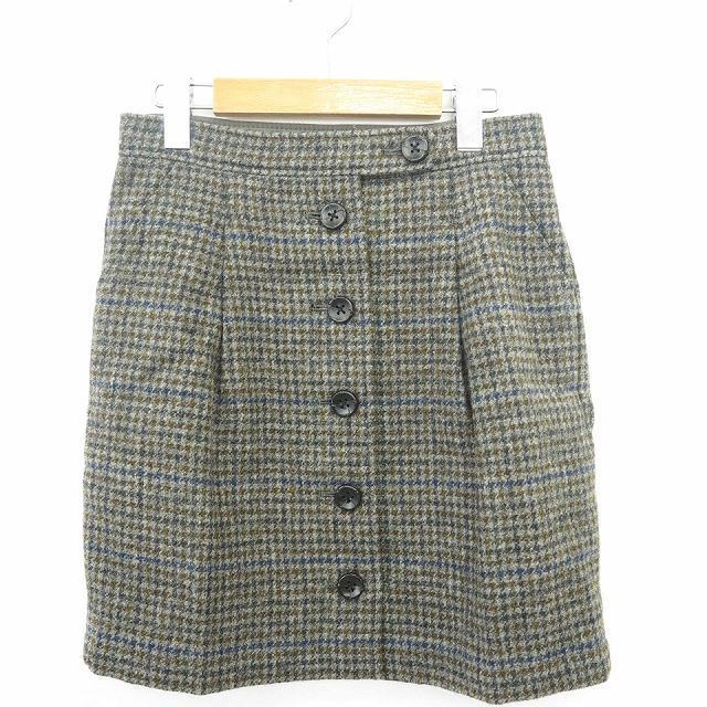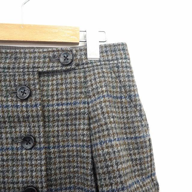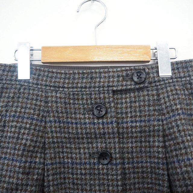 23区 オンワード樫山 スカート ボトムス 台形 チェック ミニ ショート ウール 毛 レザー 牛革 34 グレー ネイビー 灰 紺 レディース