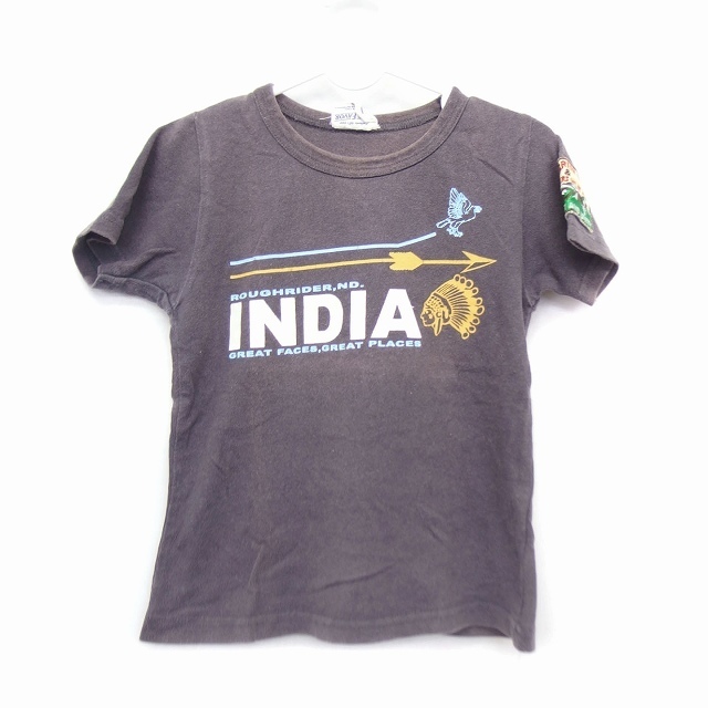 FIND FAVOR 子供服 Tシャツ カットソー クルーネック 半袖 コットン 綿 プリント イラスト ワッペン 110 ブラウン 茶 /HT11 キッズ