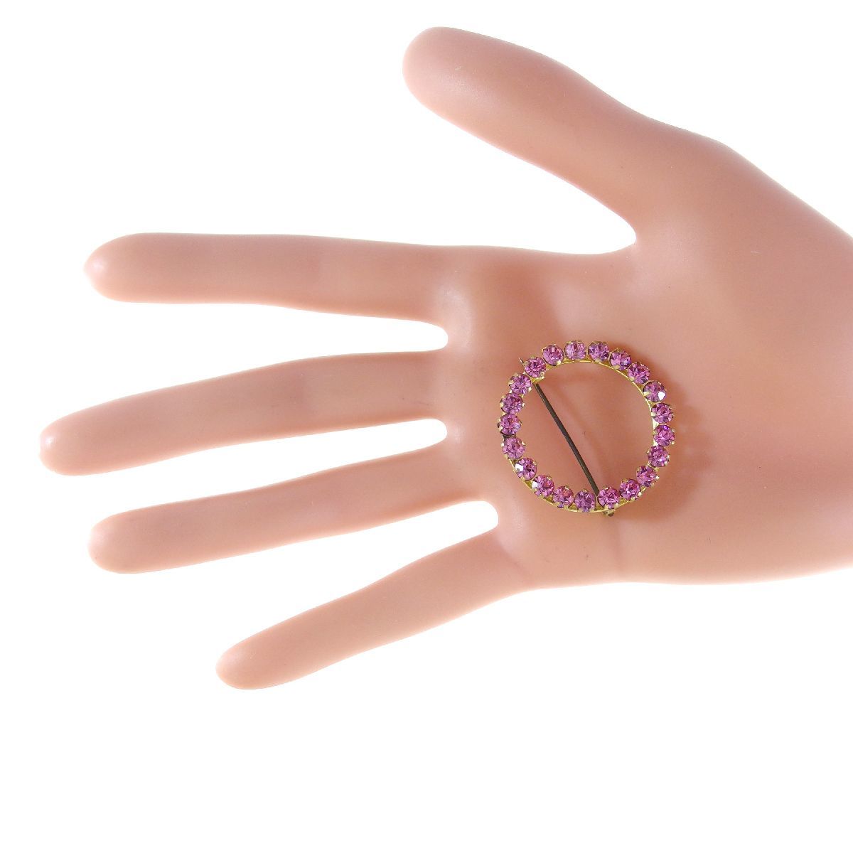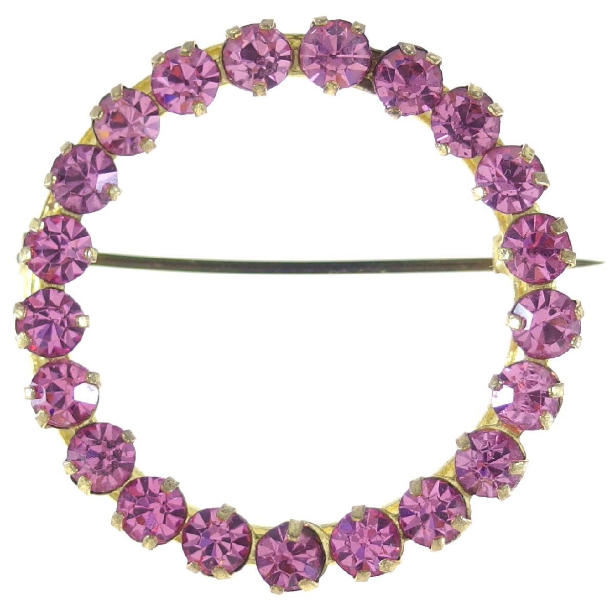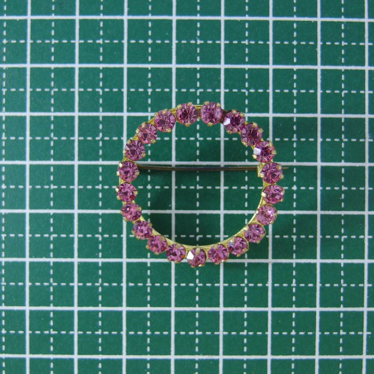 UK972◆ ピンク系ラインストーン シンプルなリース型 ◆ ヴィンテージブローチ ◆