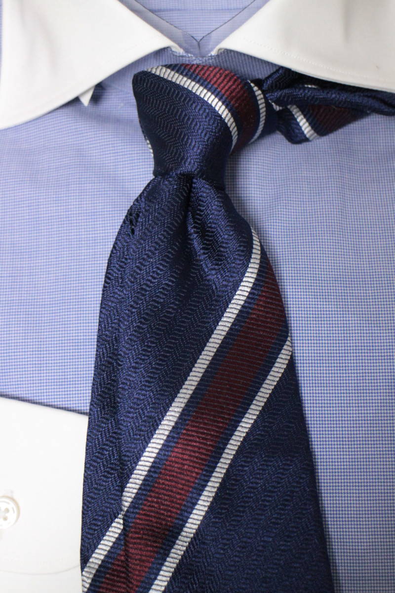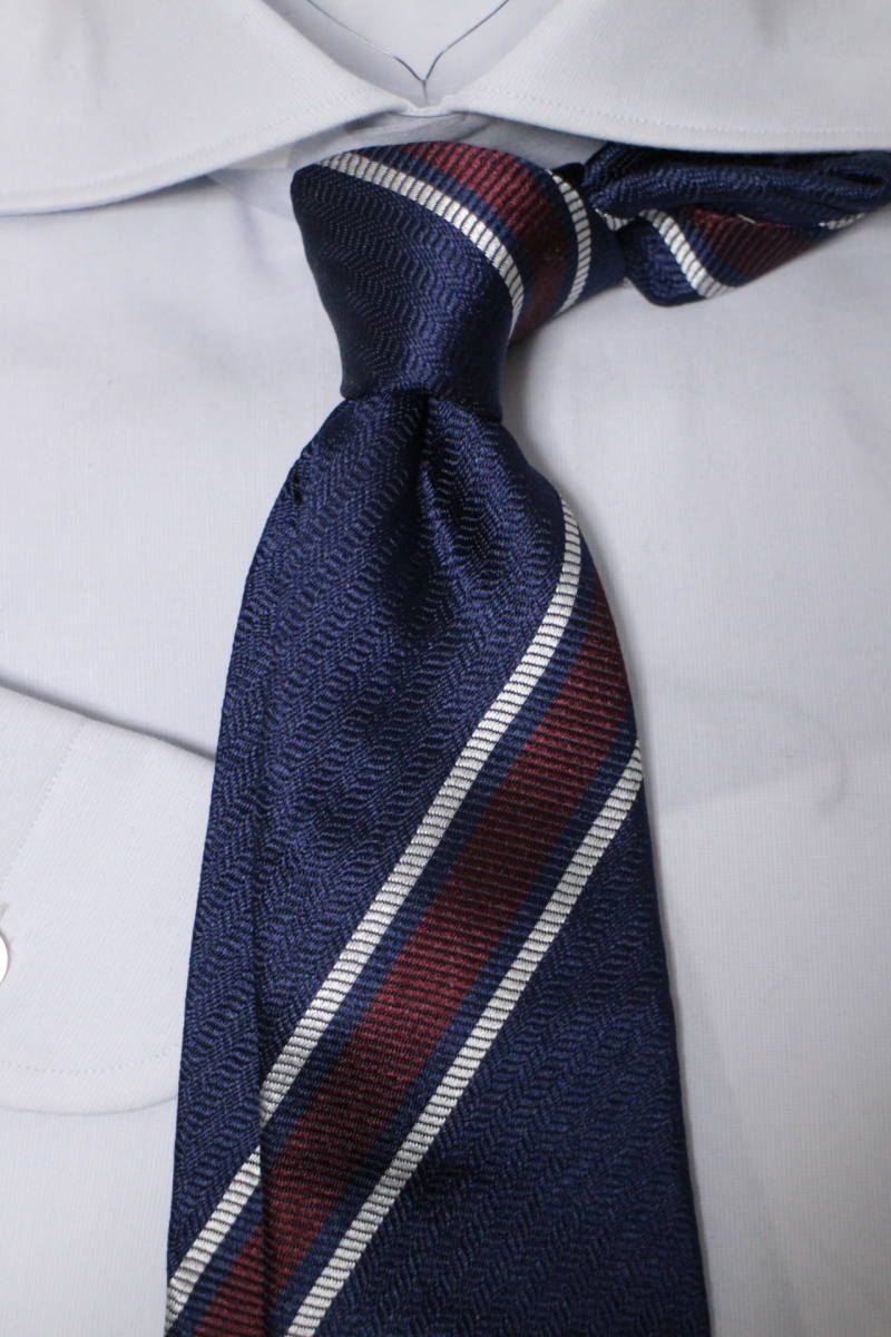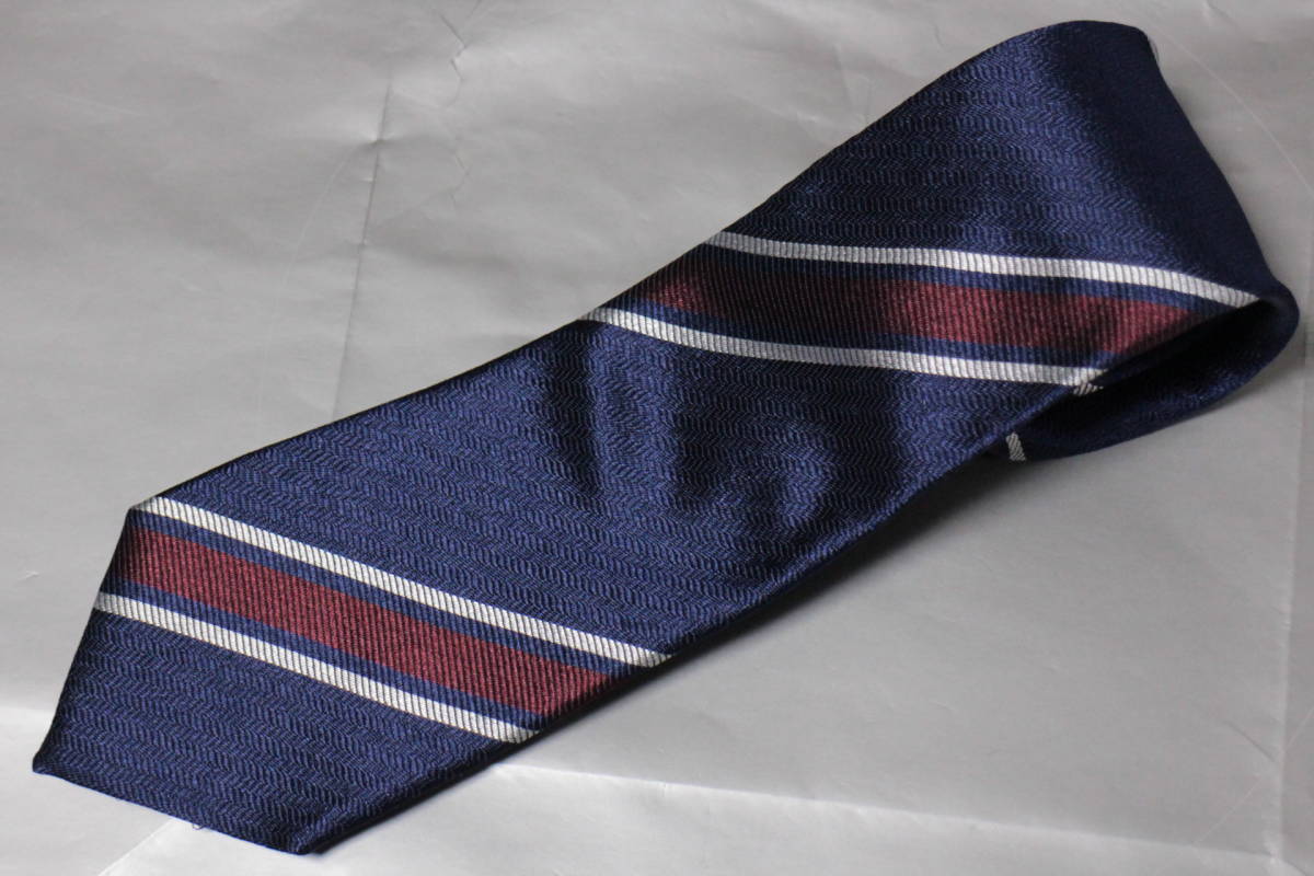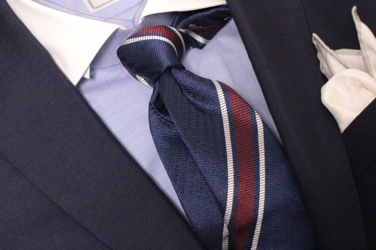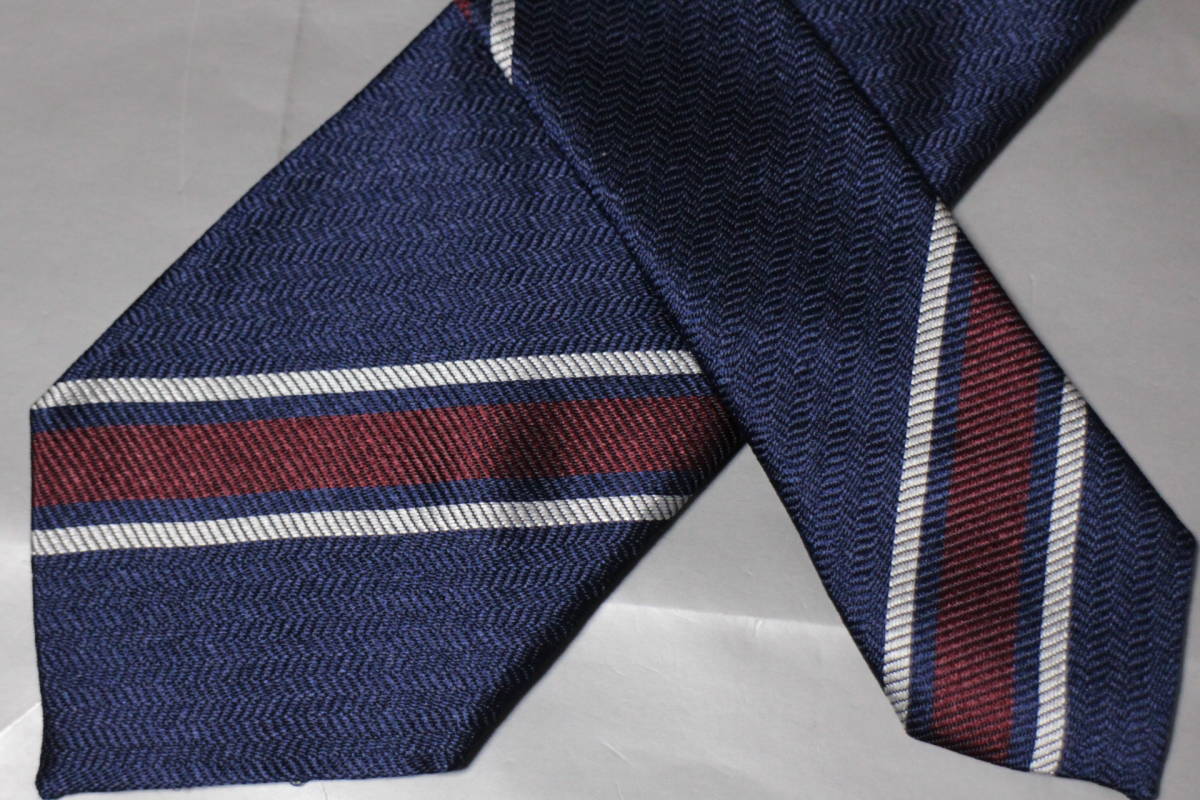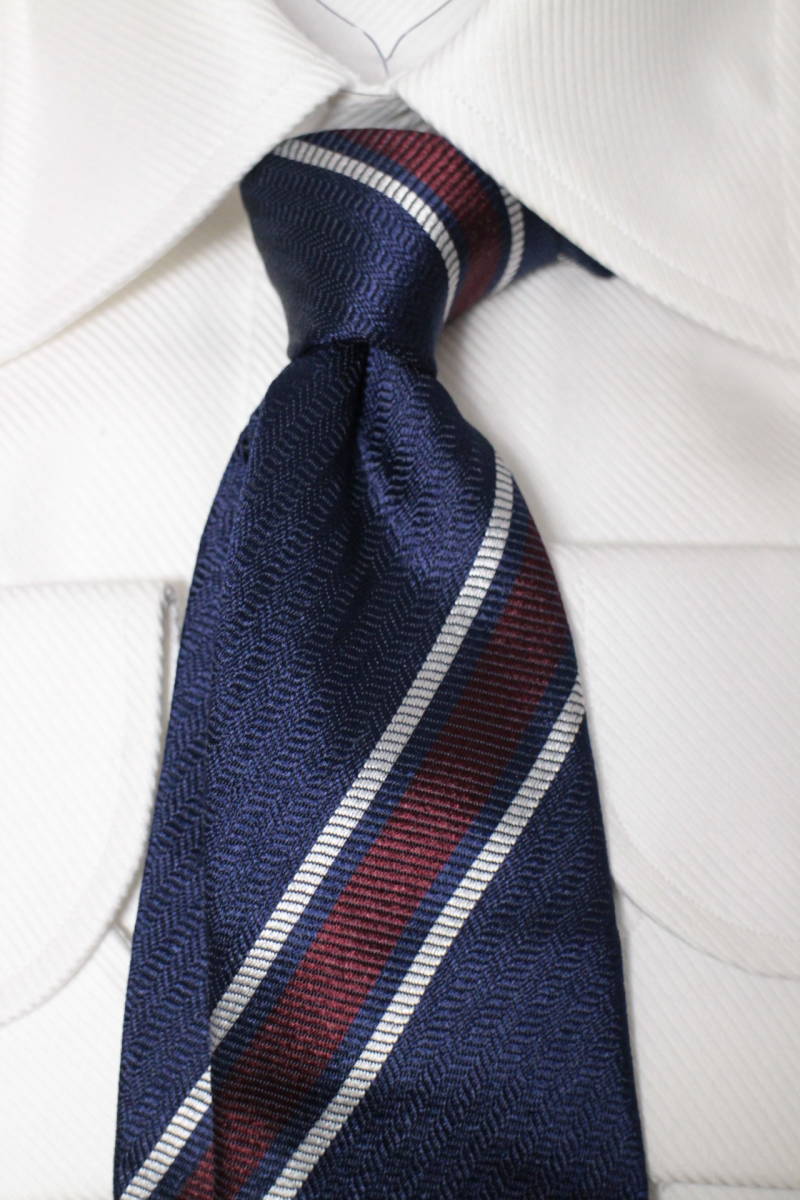 ジエッレ*ビームス新品ネクタイ超華麗艶ネイビー*ボルドー*シルバーオルタネートレジメンタルジャガードヘリンボーン織フルハンドメイド