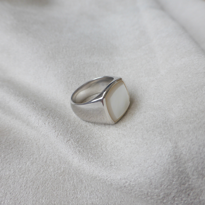 TOM WOODの大人気クッションリング。 繁栄を引き付け、心を落ち着かせる愛と負のエネルギーから母のように守ってくれると信じられているマザーオブパール石のホワイトモップ。 トムウッドのシグネチャークッションシェイプを形成するように設計されたクラシックなシグネットリングです。 スタイルを選ばないシンプルでベーシックなデザイン。 洗練されたシルバーの輝きがとても印象に残り、存在感がありながらも上品に手元を演出する指輪です。 |