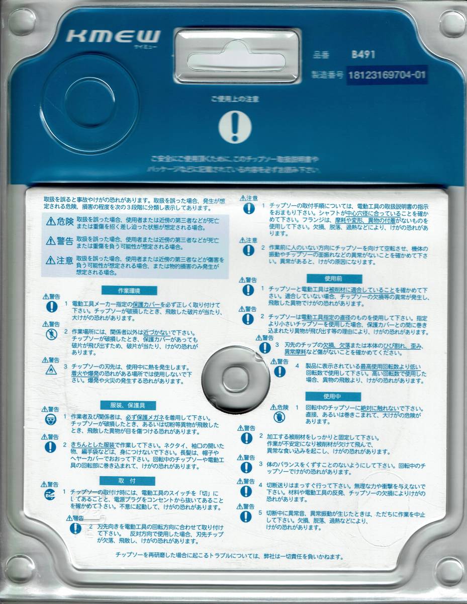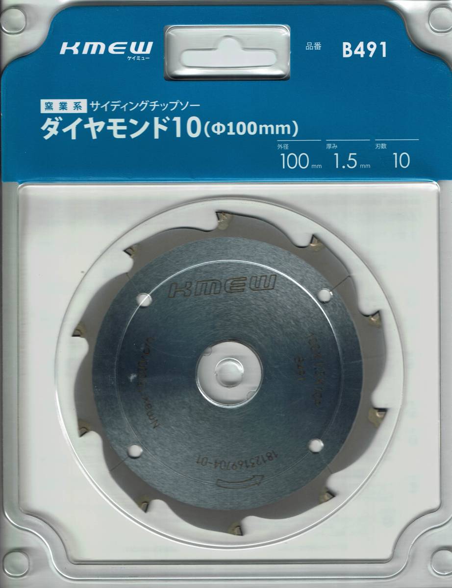 | ■KMEW オールダイヤモンドチップソー 窯業系サイディング用 ■品番:B491 ■外径:100㎜ ■刃厚:1.5㎜ ■刃数:10P ■1枚の価格です。 | |