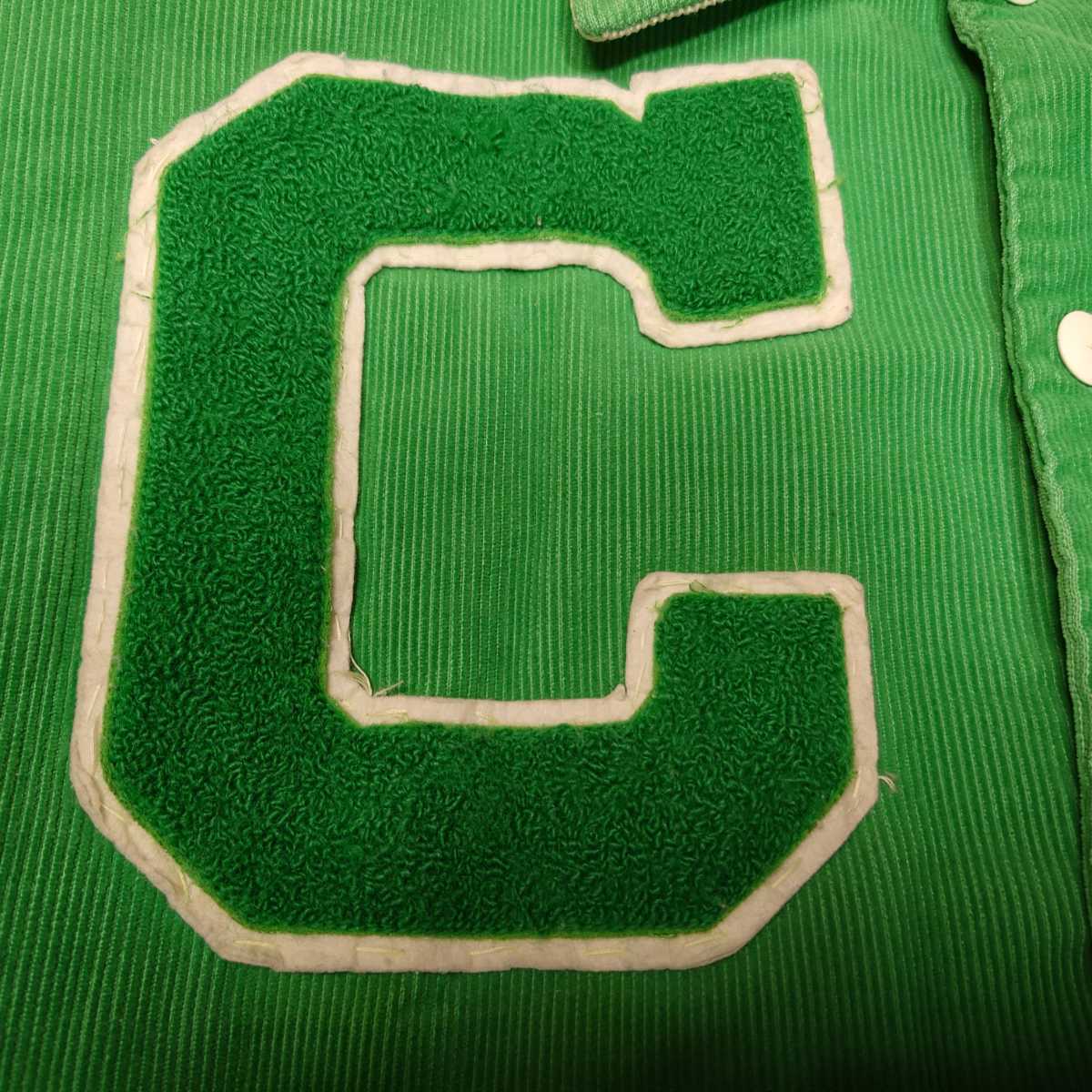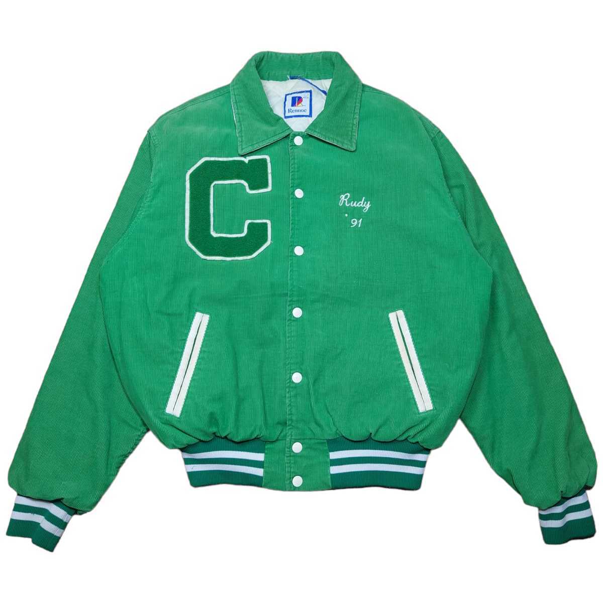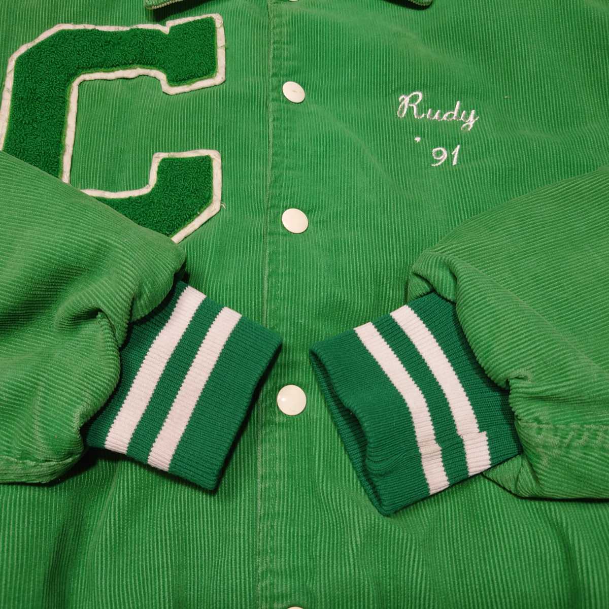 90s コーデュロイ スタジャン 古着 グリーン 刺繍 ワッペン 緑 スタジャン  アワードジャケット