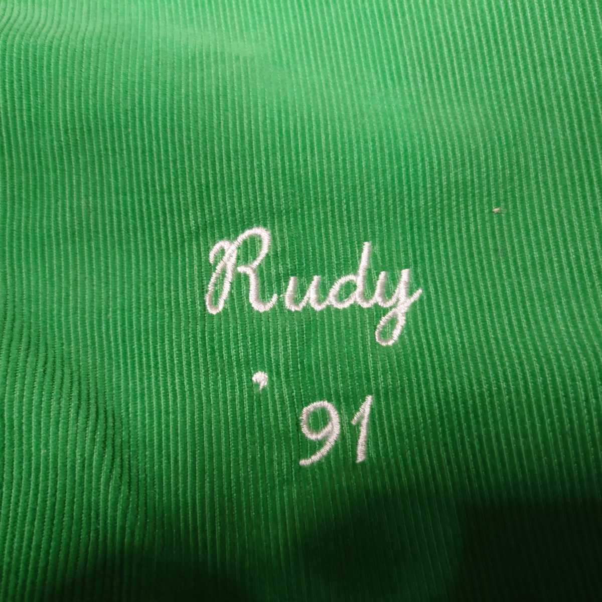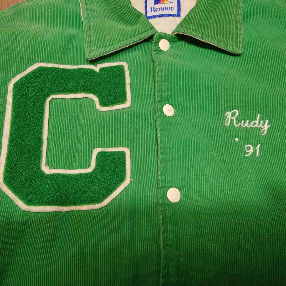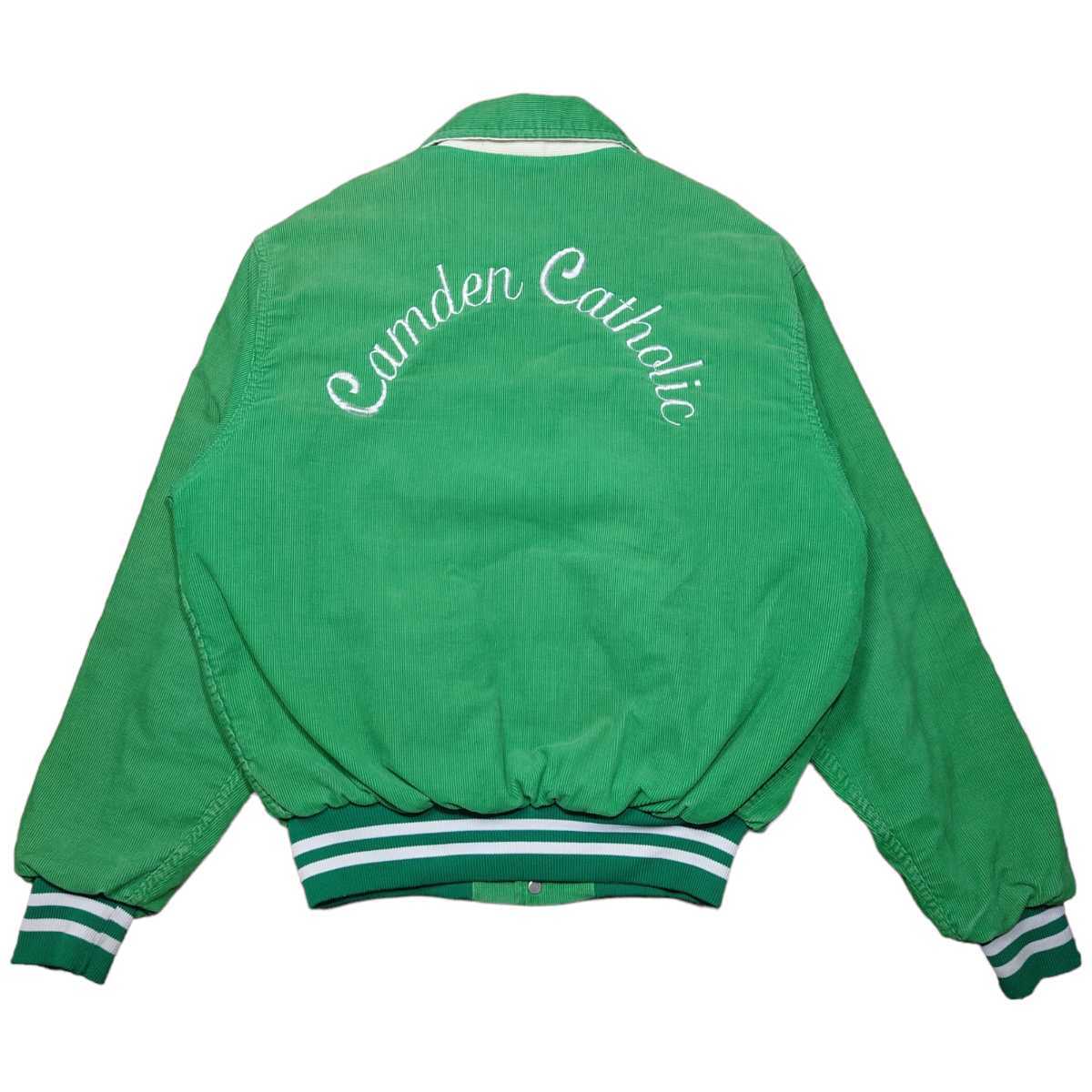 90s コーデュロイ スタジャン 古着 グリーン 刺繍 ワッペン 緑 スタジャン  アワードジャケット