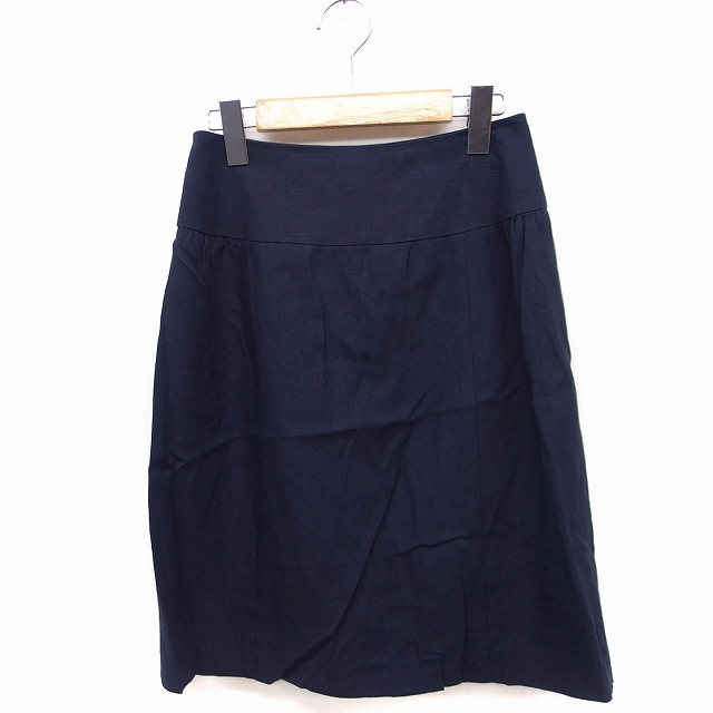 イエナ IENA フレア スカート ひざ丈 無地 シンプル 麻混 36 ネイビー 紺 /FT11 レディース
