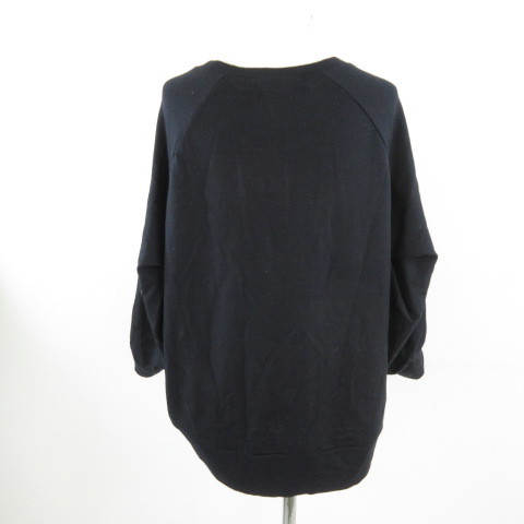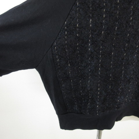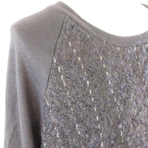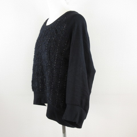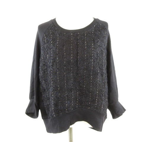 スカディ Squady カットソー ニット 七分袖 異素材 黒 紺 2 *E719 レディース