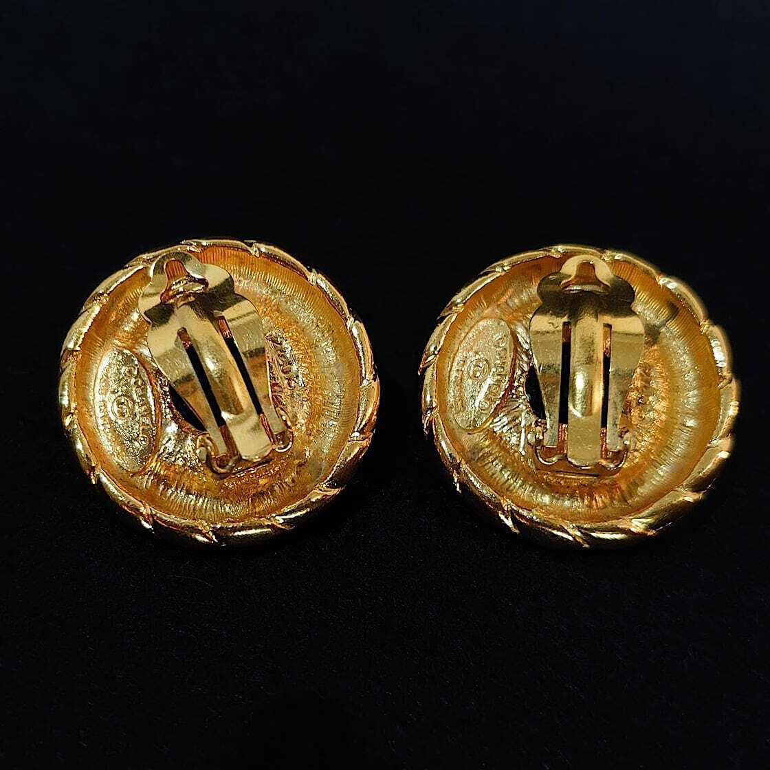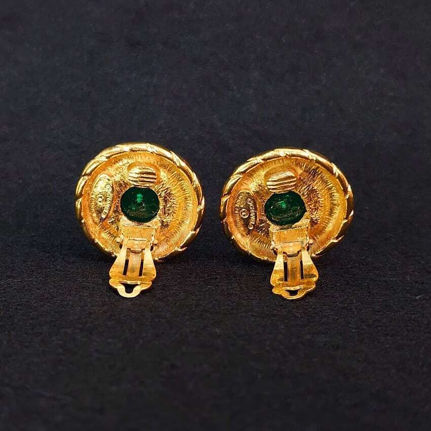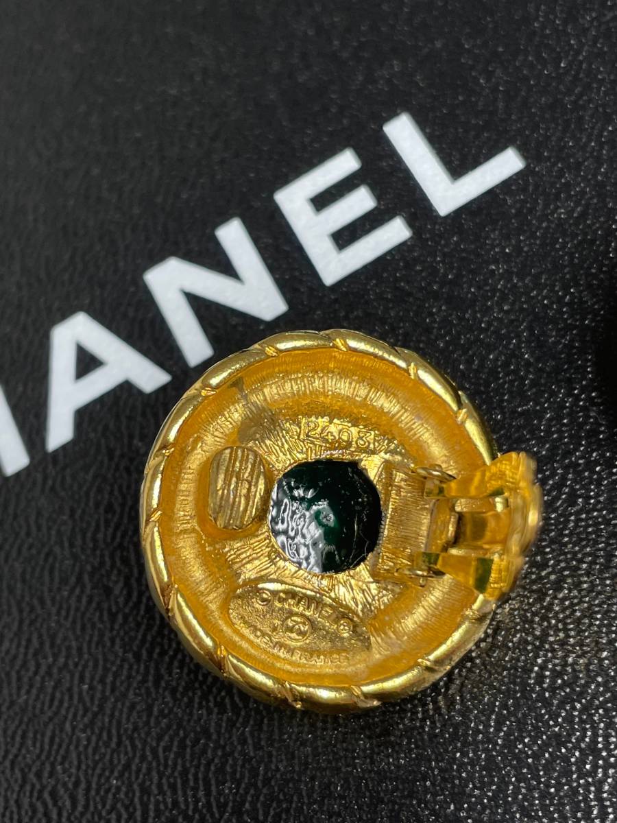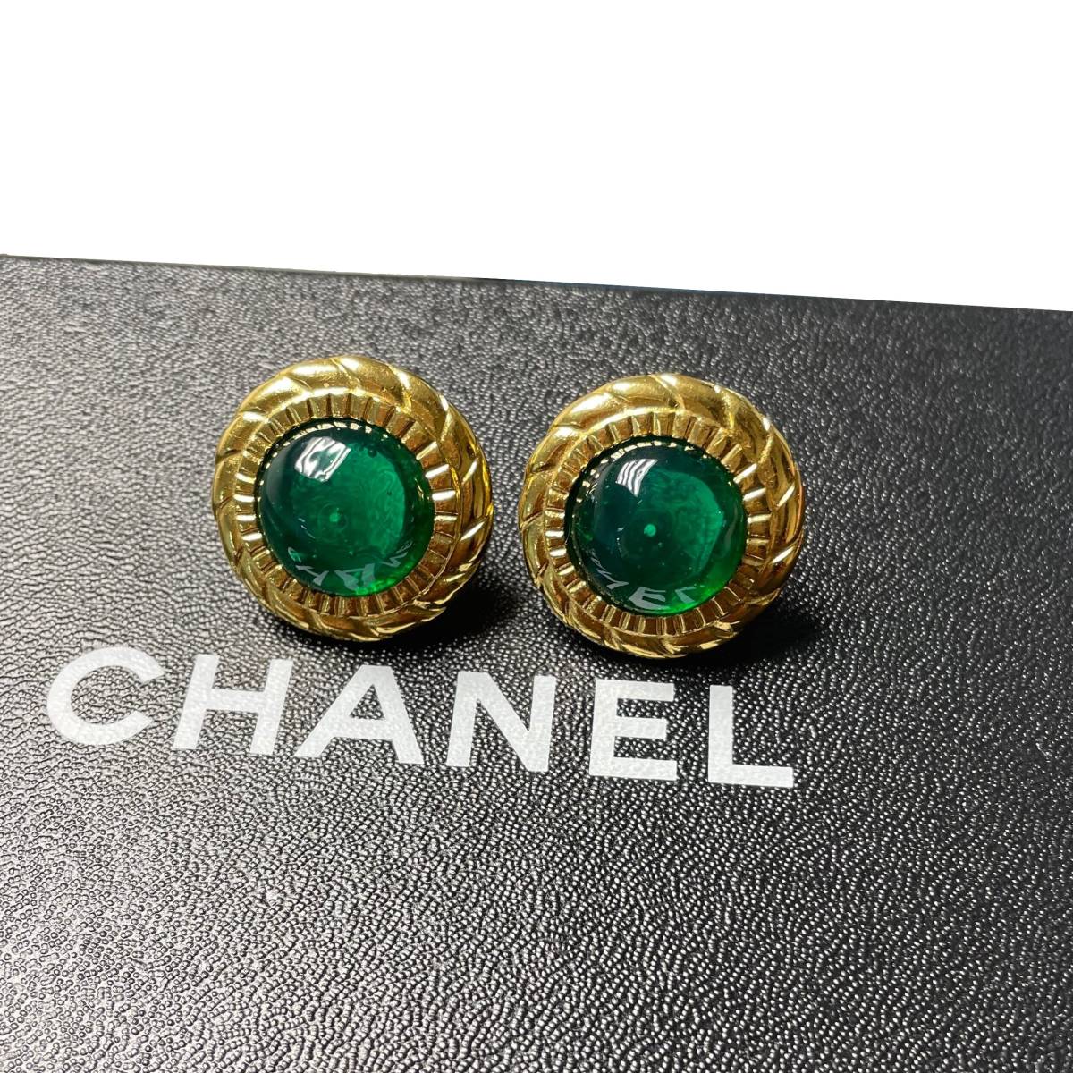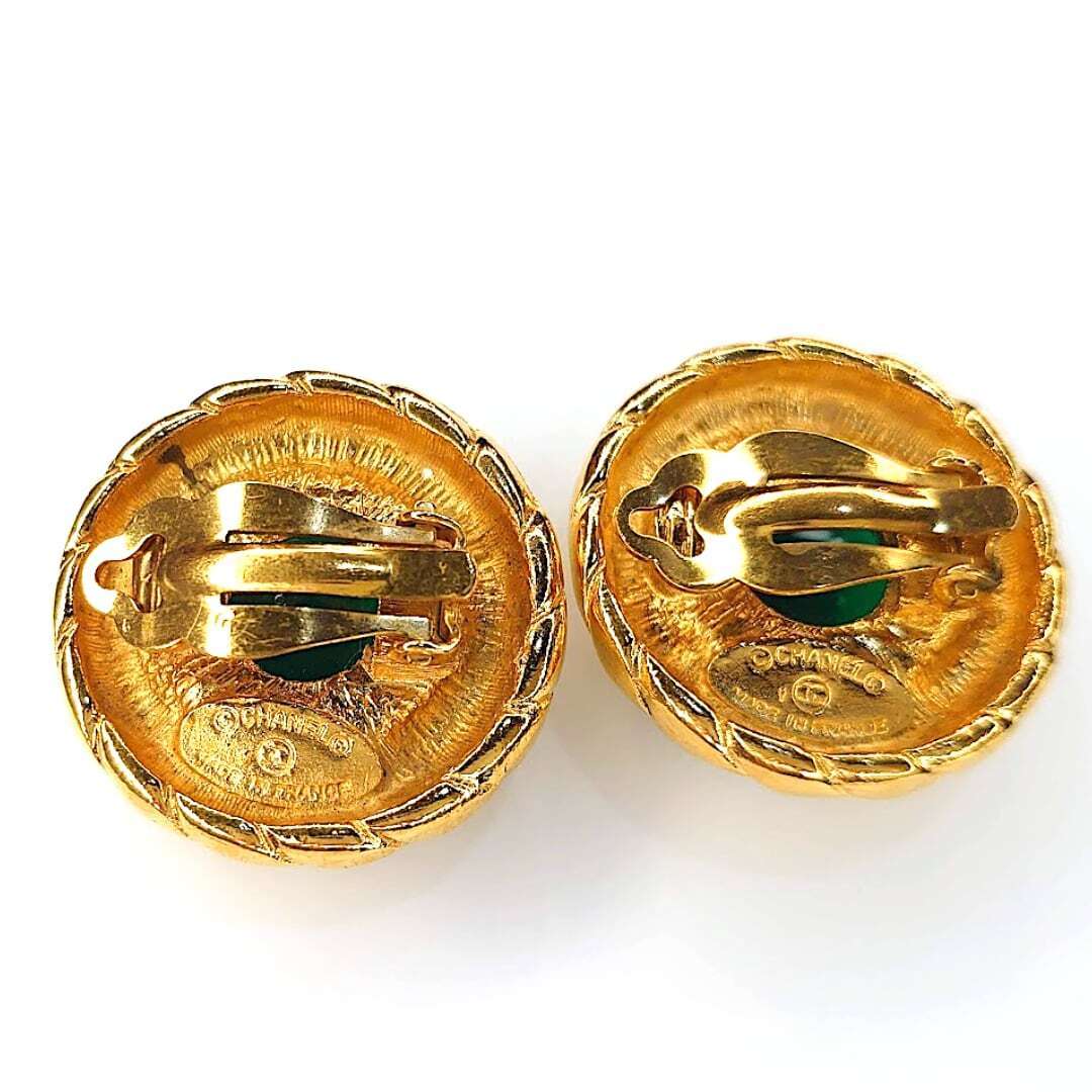 【希少】CHANEL シャネル グリーン ゴールド イヤリング ヴィンテージ グリポア カラーストーン 色石 丸型 グリーン 緑 エメラルドグリーン