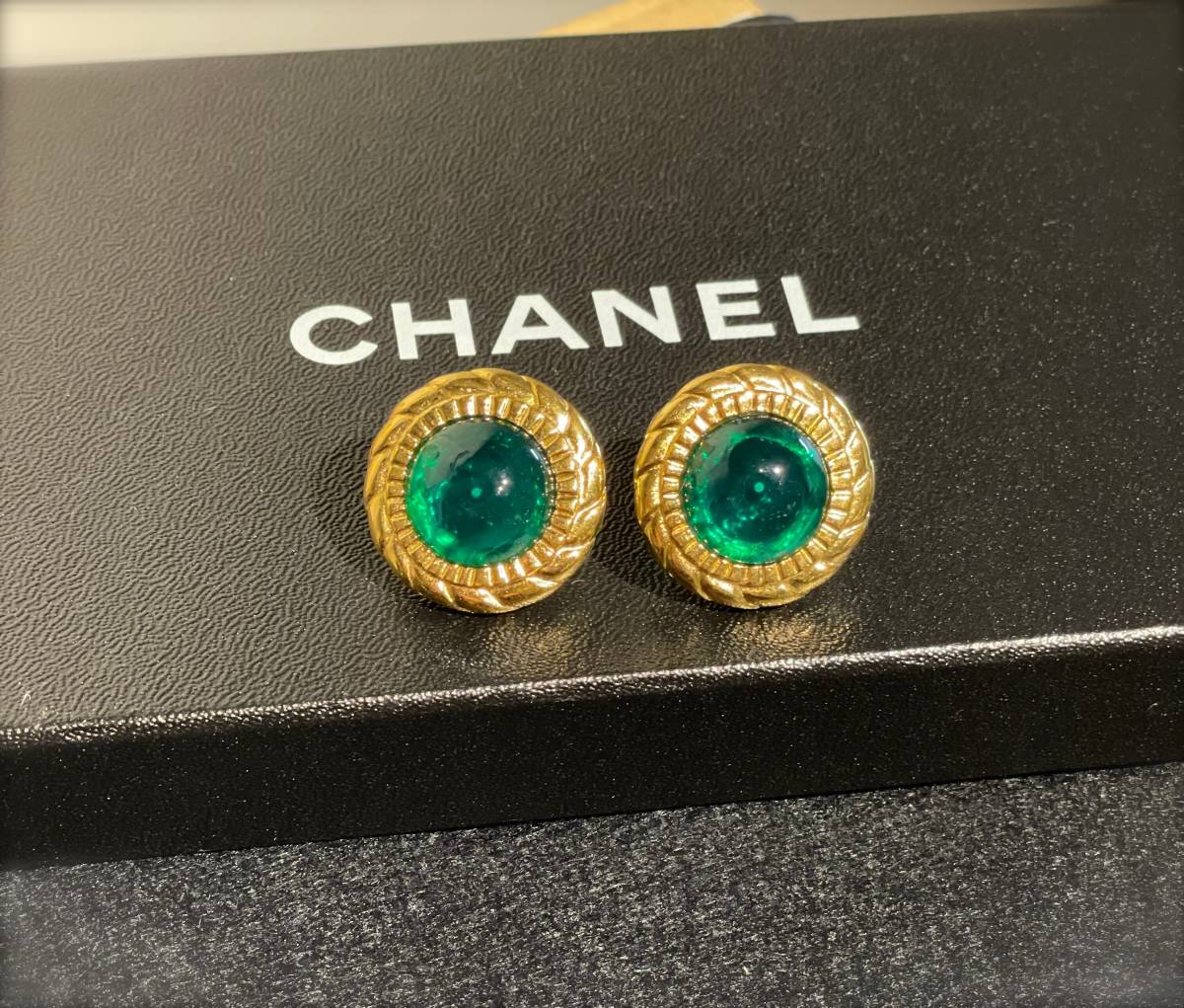「CHANEL (シャネル) オールドシャネル エメラルドグリーン×ゴールド ヴィンテージ イヤリング」です。