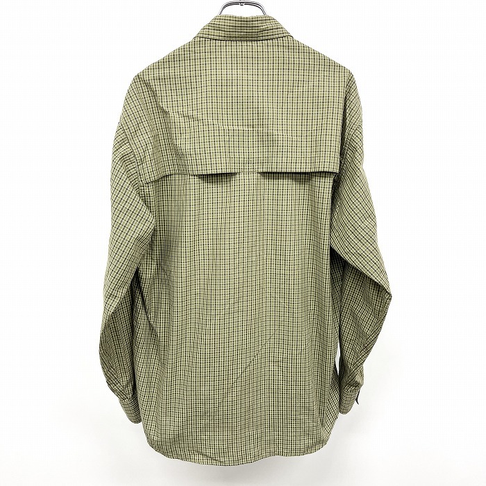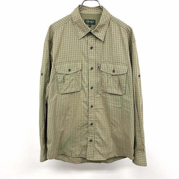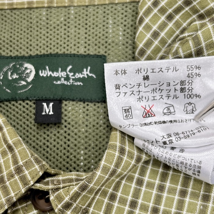 | 商品タイトル | Whole Earth Collection - M メンズ アウトドア シャツ 後ろ身頃の肩にメッシュ裏地 チェック 長袖 袖ロールアップ ポリ×綿 グリーン 緑 |