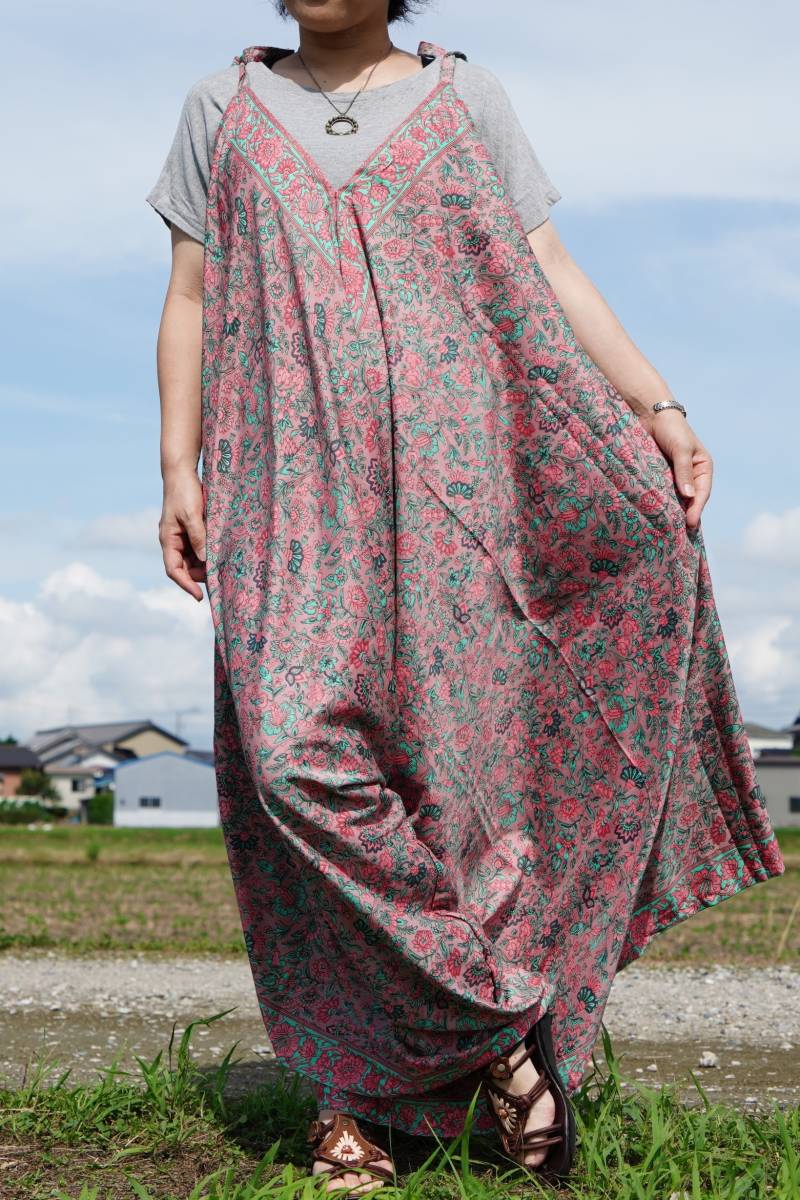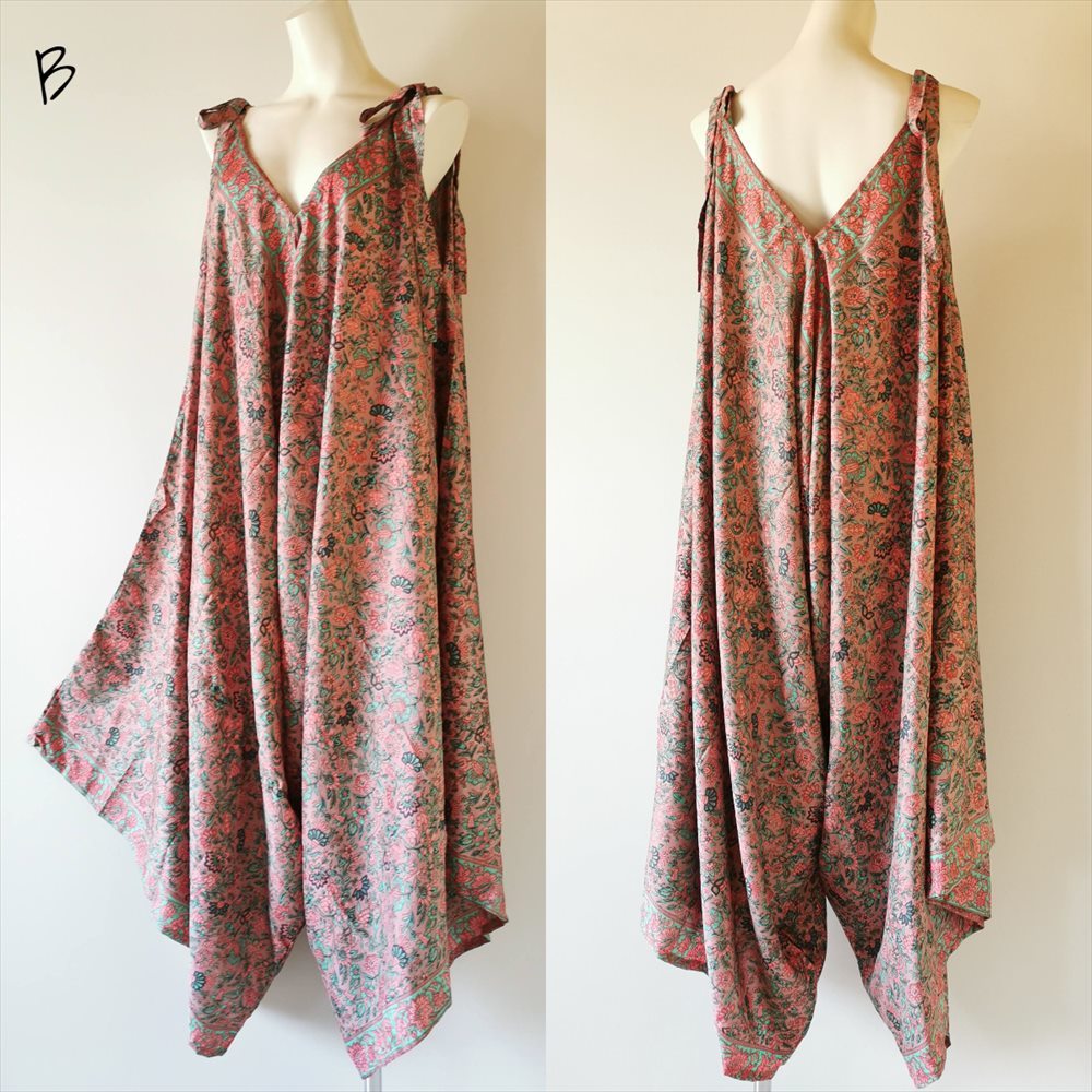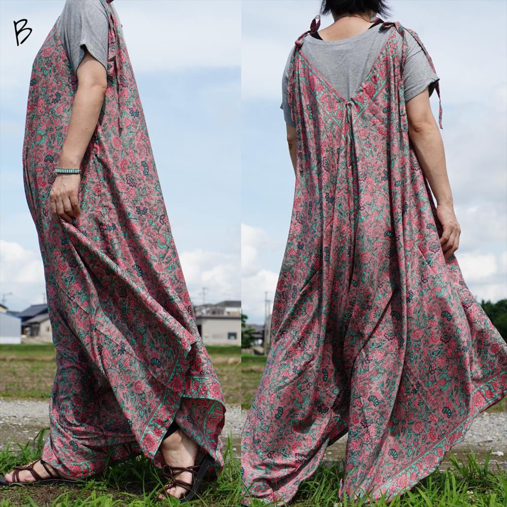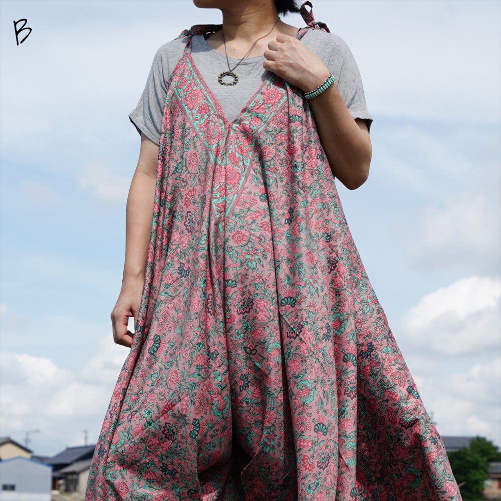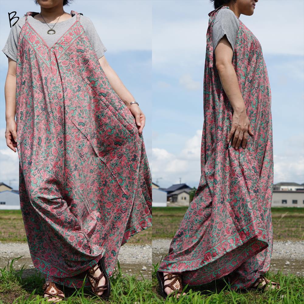 ★エスニック シルク サロペット オールインワン 送料込★新品 送料込B★アジアン ビスコース素材 シルク フリーサイズ