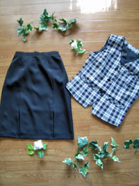 ベストとスカートの2点セットです。 実寸サイズをご覧になり、ご確認なさって下さいませ こちらのお品は撥水性に優れ水性・油性の汚れから製品を保護する加工してあります 生地は中厚で、裏地は総裏です ご注意・・・こちらのお品はラベル(タグ)等に折れスジがあります。ご了承下さい 【ベスト】お色は黒&白の格子チェックです。画像では紺に見えますが黒系です ポケットは4ヶ所付いております (胸ポッケ・内ポケット・ウエスト2ヶ所) ベストの後に飾りベルトが付いており調節可能です 【スカート】は台形タイプで、後ろ側脇ゴム入り。楽なので嬉しいですね お色は黒の無地 生地は光沢ある綾織りの織り生地でやや伸縮あり ボックスプリーツが前左右にあり 後ろファスナー開き 裏地付き ポケットなし キャリアーレディとして最適のベストスーツをおすすめ致します 是非ご検討お願い致します ◆ヌードサイズ◆ 11AR67 バスト86 ヒップ93 身長158 ウエスト67 ◆◆実 寸◆◆ (平置きで。幅は倍にして下さいませ) <ベスト> 着 丈(後襟元から)約49 脇下丈 約28 脇下幅 約47 ウエスト幅 約43 肩 幅 約36 <スカート> ウエスト幅 約32(最大幅約34) ヒップ幅 約47 前スカート丈 約56(ベルト幅2含む) ボックスプリーツ丈 約18 ◆ 素 材 ◆ <ベスト・スカート> 表 地 ポリエステル100% 裏 地 ポリエステル100% 新品・ラベル付(タグ) 洗濯表示:手洗いOK 日本メーカーの中国製 旧洗濯表示 (アクセサリー・シャツ・小物等はイメージでございます) |