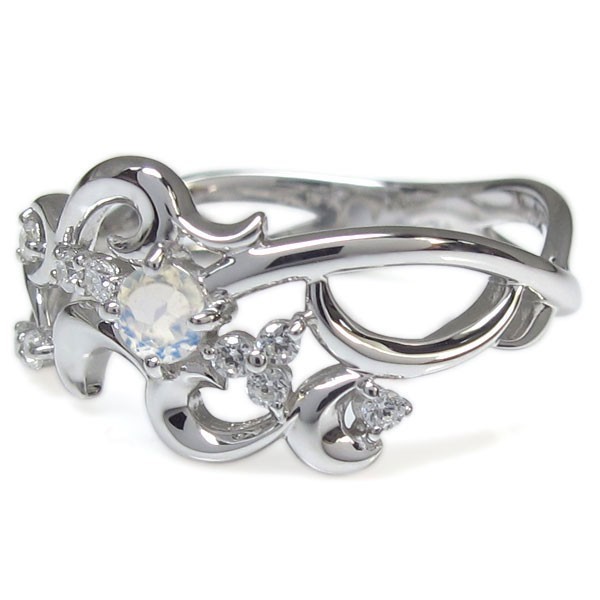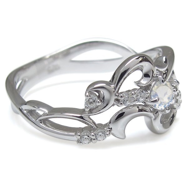 ■石名:主石 ロイヤルブルームーンストーン(約 3.0mm/天然石使用)脇石 ダイヤモンド(9石合計で約 0.09ct/天然石使用)