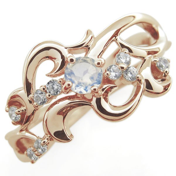 6月誕生石ロイヤルブルームーンストーンを使用した18金製の唐草(アラベスク)デザインリング(指輪)です。