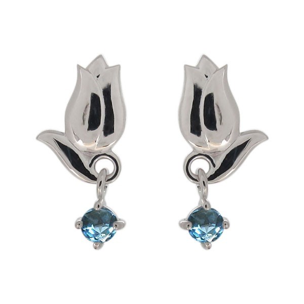 ピアス チューリップ 花 揺れる プラチナ レディース 11月誕生石 ブルートパーズ