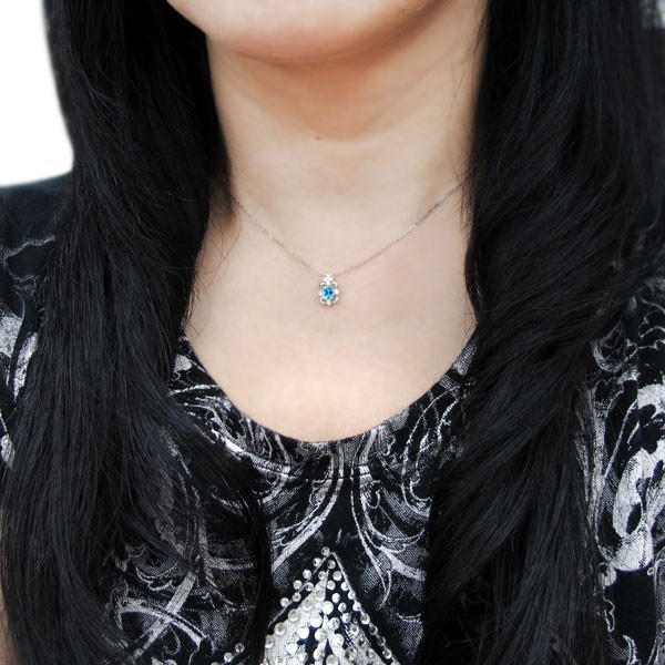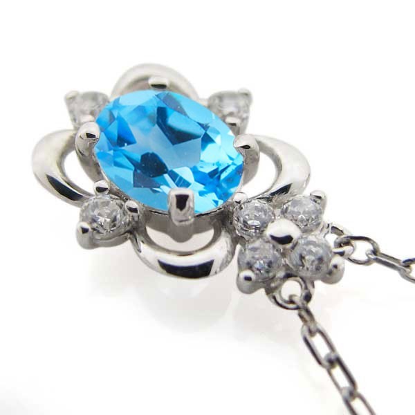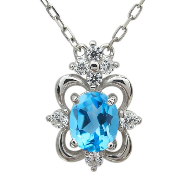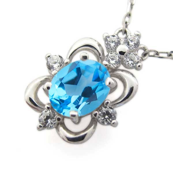 11月誕生石ブルートパーズを一粒使用したシルバー製の、レディースネックレス(ペンダント)です。