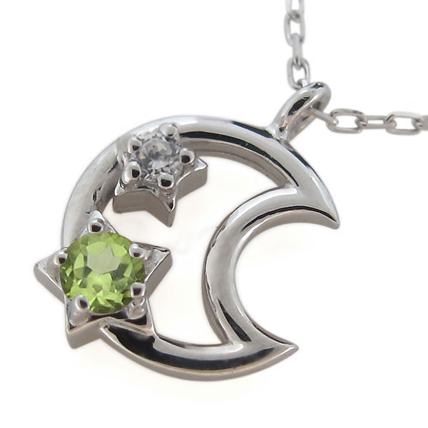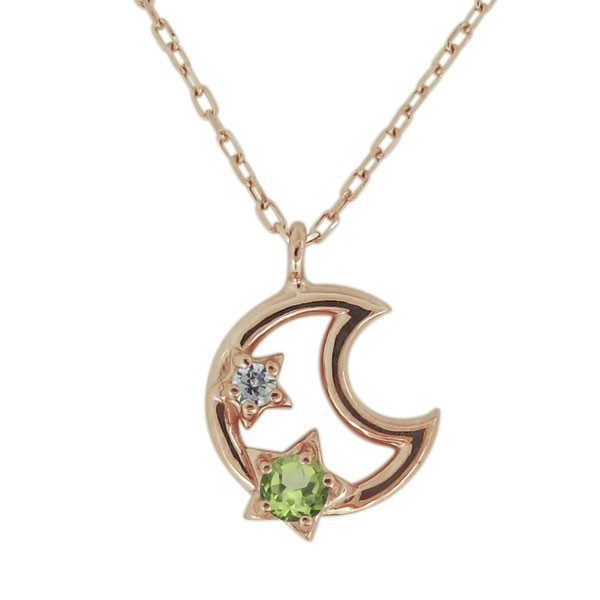 8月誕生石ペリドットを使用した18金製の、三日月(ムーン)と星(スター)モチーフネックレス・ペンダントです。