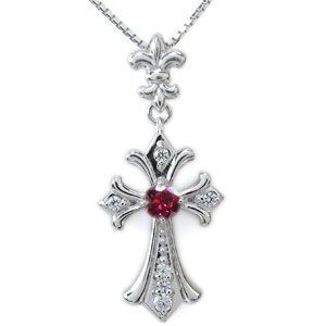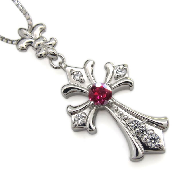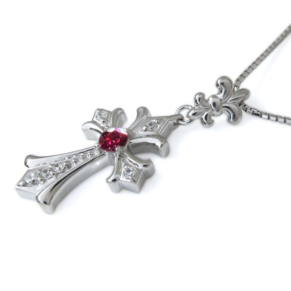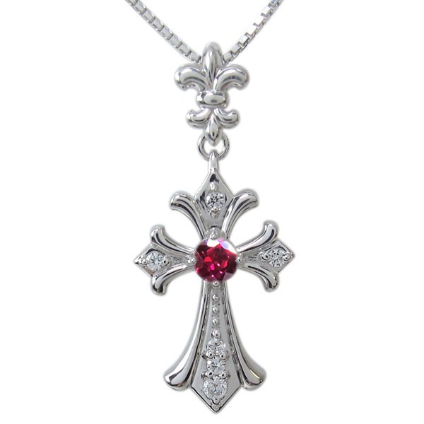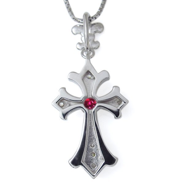 メンズ ネックレス プラチナ クロス ルビー ペンダント7月誕生石ルビーを一粒使用した、クロス&百合の紋章デザインのプラチナ製メンズネックレス・ペンダントです。