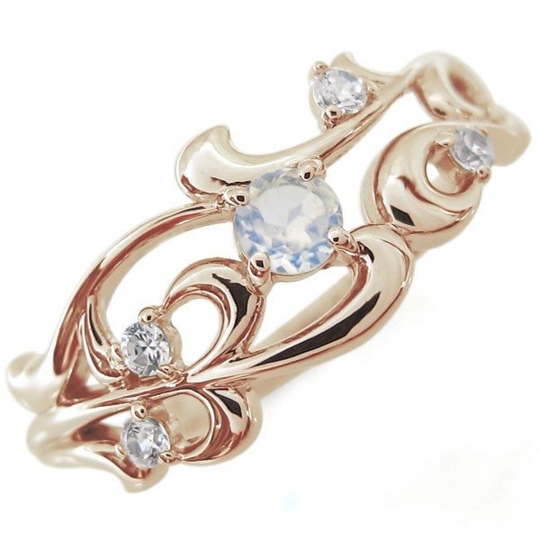 ■石名:主石 ロイヤルブルームーンストーン(約 3.0mm/天然石使用)脇石 ダイヤモンド(4石合計で約 0.08ct/天然石使用)