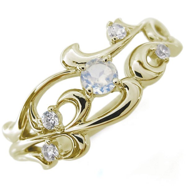 6月誕生石ロイヤルブルームーンストーンを使用した18金製の唐草(アラベスク)デザインリング(指輪)です。