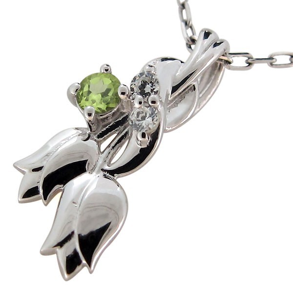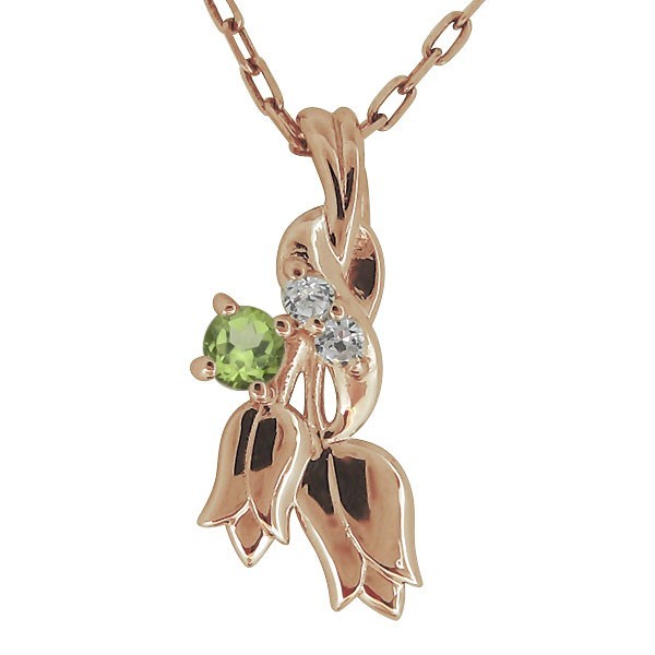 8月誕生石ペリドットを使用した18金製の、チューリップ(フラワー)モチーフレディースネックレス(ペンダント)です。