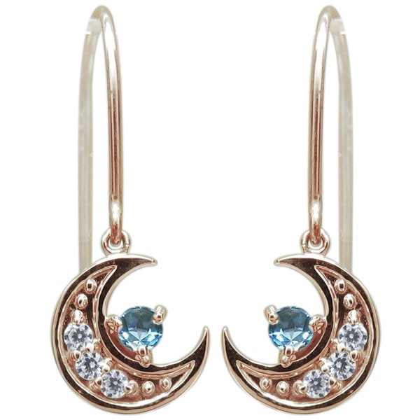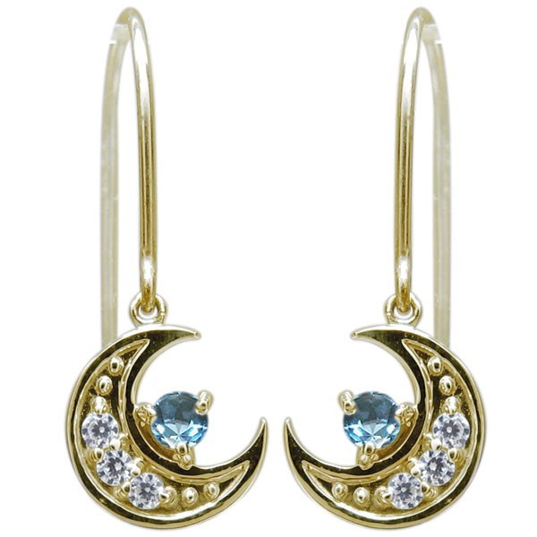 ムーンピアス 月 三日月ピアス ブルートパーズ フックピアス K18