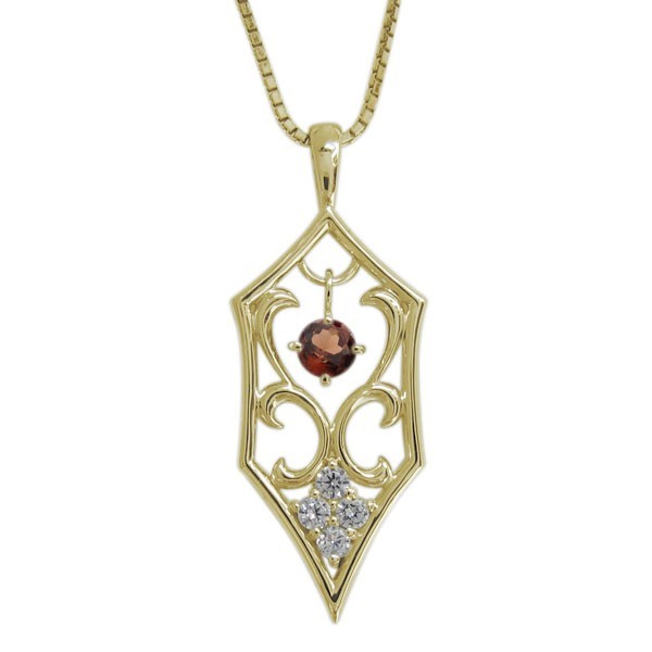 1月誕生石ガーネットを使用した10金製の、唐草(アラベスク)モチーフメンズ・ネックレスペンダントです。