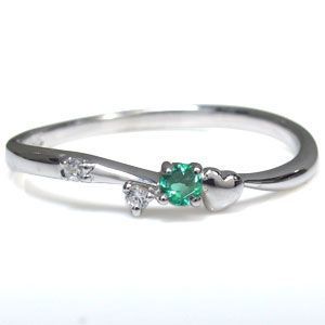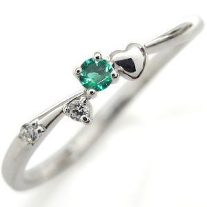 5月誕生石エメラルドを一粒使用した、ハートモチーフが印象的なプラチナ製リングです。