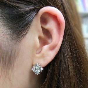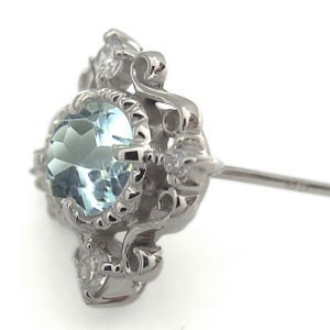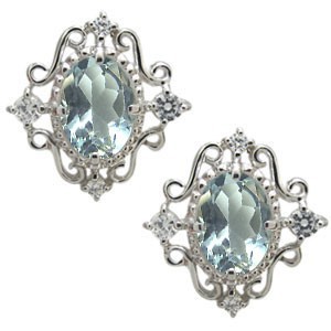 アクアマリン ピアス アンティーク オーバル 10金 一粒 ピアス
