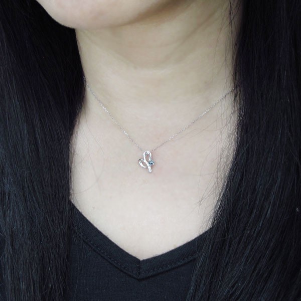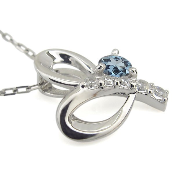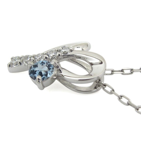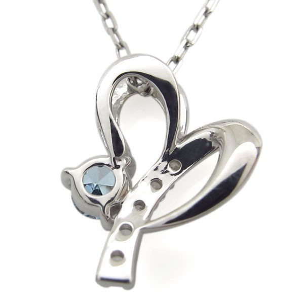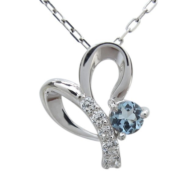 3月誕生石アクアマリンサンタマリアを使用したプラチナ製の、オープンハートをモチーフにしたネックレスペンダントです。
