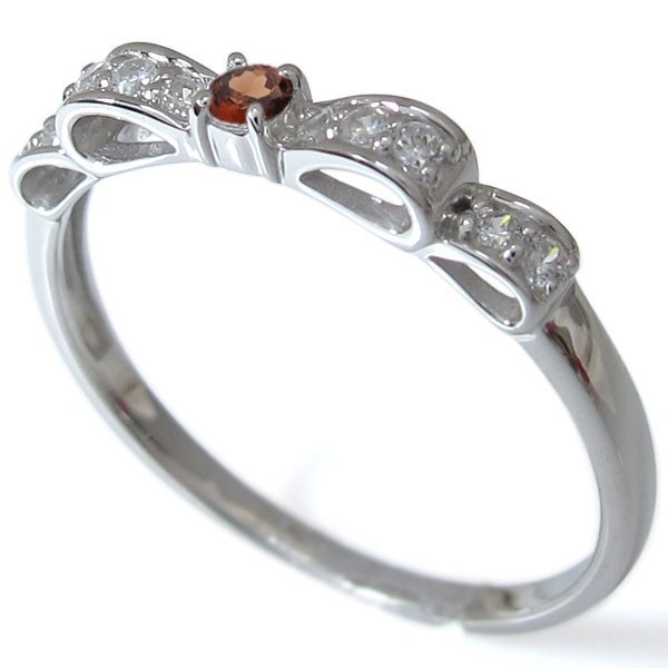 1月誕生石ガーネットを使用した、リボンモチーフのプラチナ製リング(指輪)です。