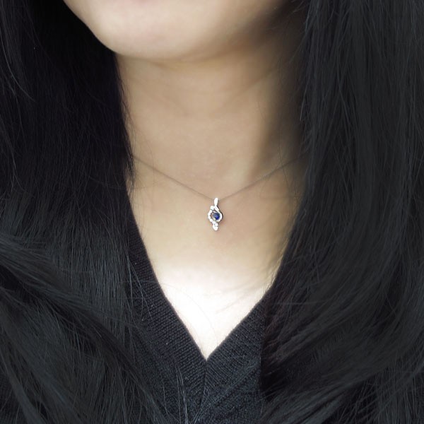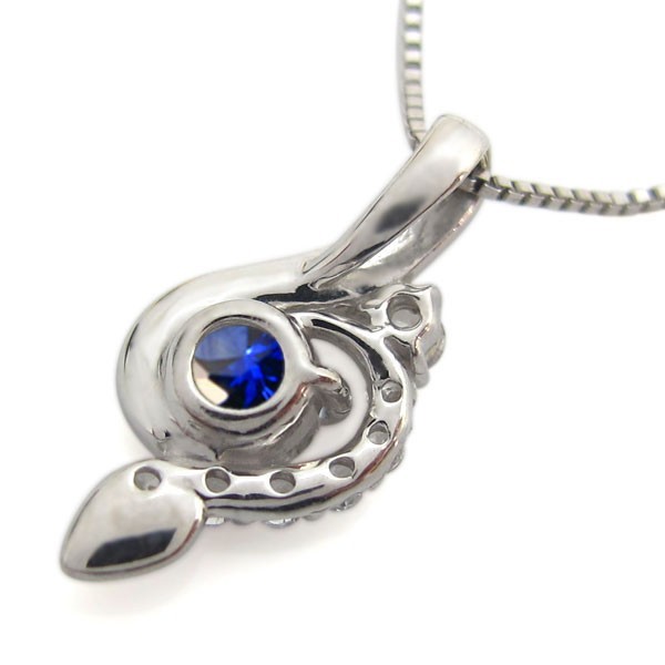 9月誕生石サファイアを一粒使用した、18金製のト音記号(音符)モチーフネックレスペンダントです。