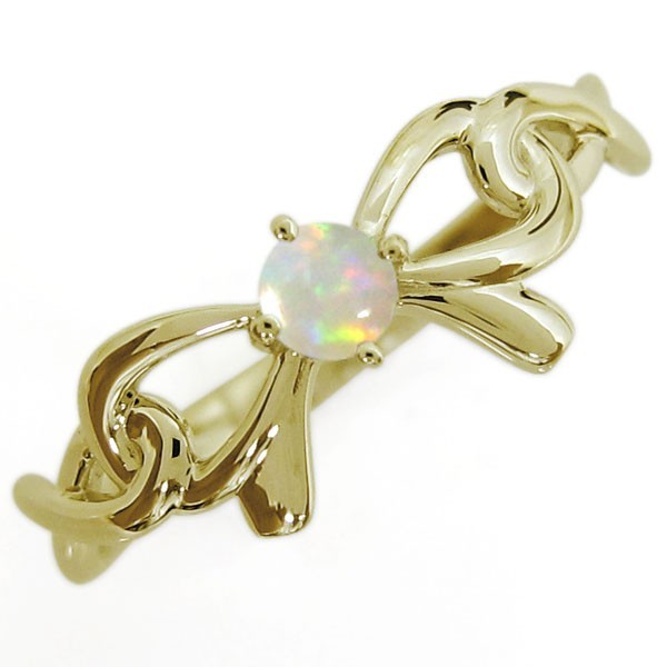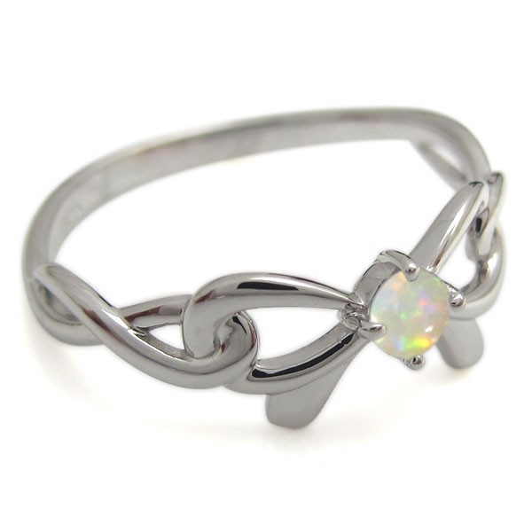 10月誕生石オパールを使用した18金製のリボン&インフィニティ(無限)モチーフリング(指輪)です。