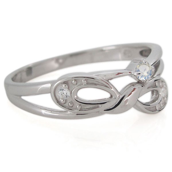 6月誕生石ロイヤルブルームーンストーンを使用したプラチナ製の、リボンモチーフのリング(指輪)です。