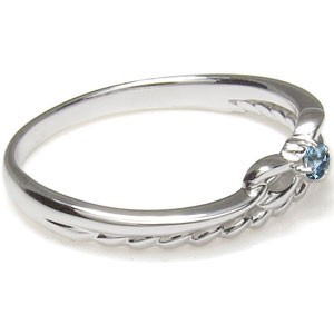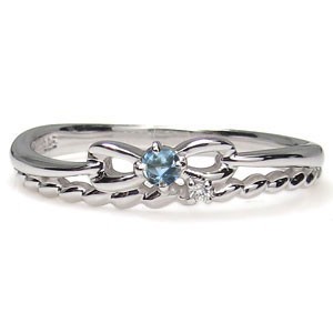 3月誕生石アクアマリンサンタマリアを一粒使用した、シルバー製のリボン&ロープ(縄)モチーフリング(指輪)です。