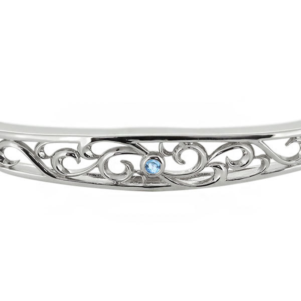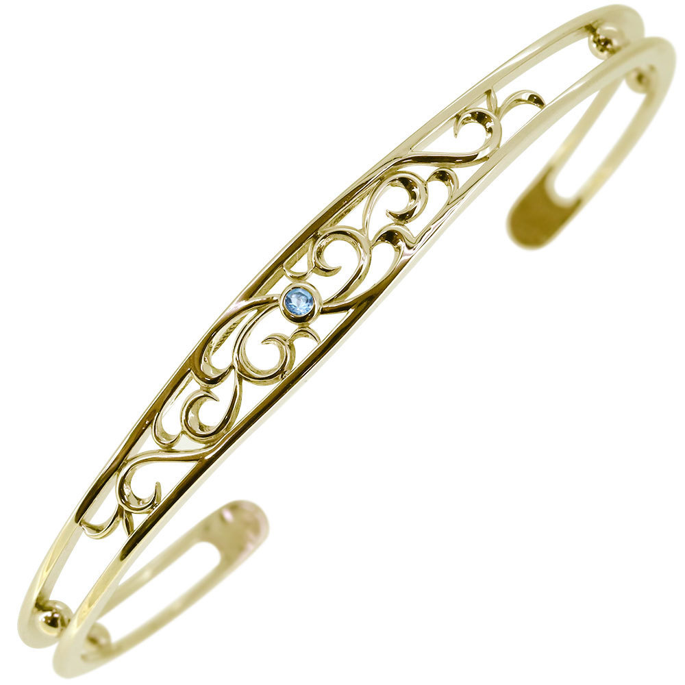 11月誕生石ブルートパーズを一粒使用した18金製の、トライバルデザインのメンズバングルです。