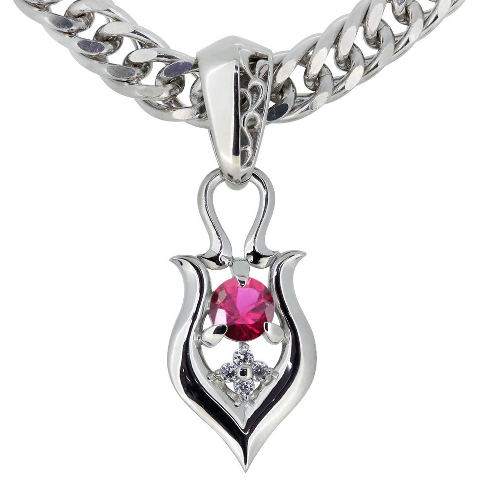 7月誕生石ルビーを使用したシルバー製の、メンズネックレス(ペンダント)です。