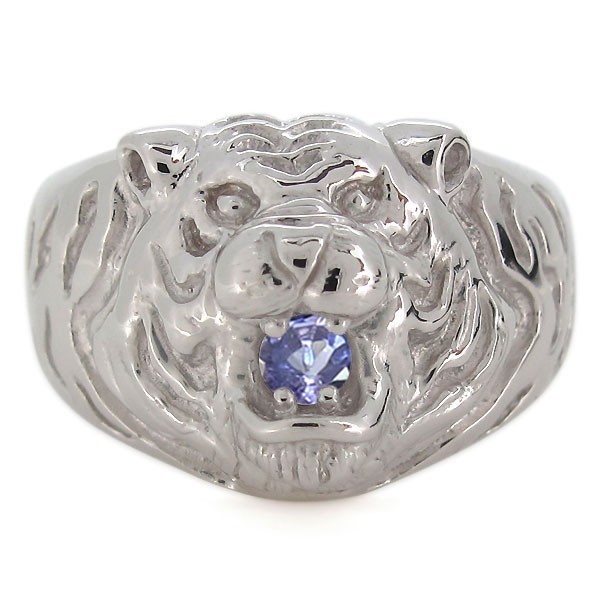 指輪 メンズ 虎 タイガー リング タンザナイト 12月誕生石 10金