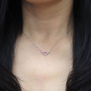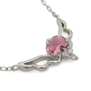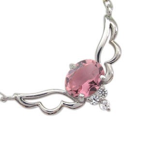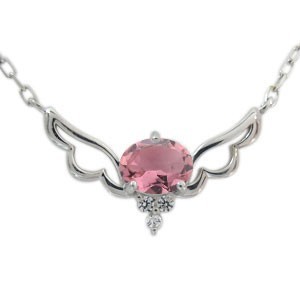 10月誕生石大粒ピンクトルマリンを、一粒使用したプラチナ製の、天使の羽根をモチーフにしたネックレスです。