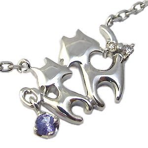 12月誕生石タンザナイトを一粒使用した18金製のネコ(猫)モチーフアンクレット兼用ブレスレットです。